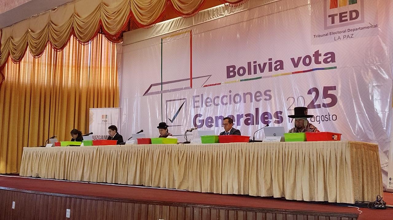 El Tribunal Electoral Departamental (TED) de La Paz brindó este lunes, en conferencia de prensa, el primer informe oficial sobre el avance del cómputo electoral tras las Elecciones Generales del 17 de agosto. La actividad se desarrolló en el centro de operaciones instalado en el Círculo de Oficiales del Ejército (COE), luego de un cuarto intermedio declarado a las 07:00.