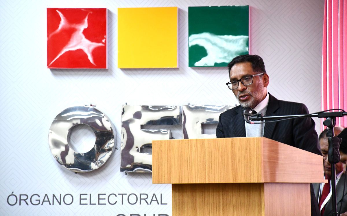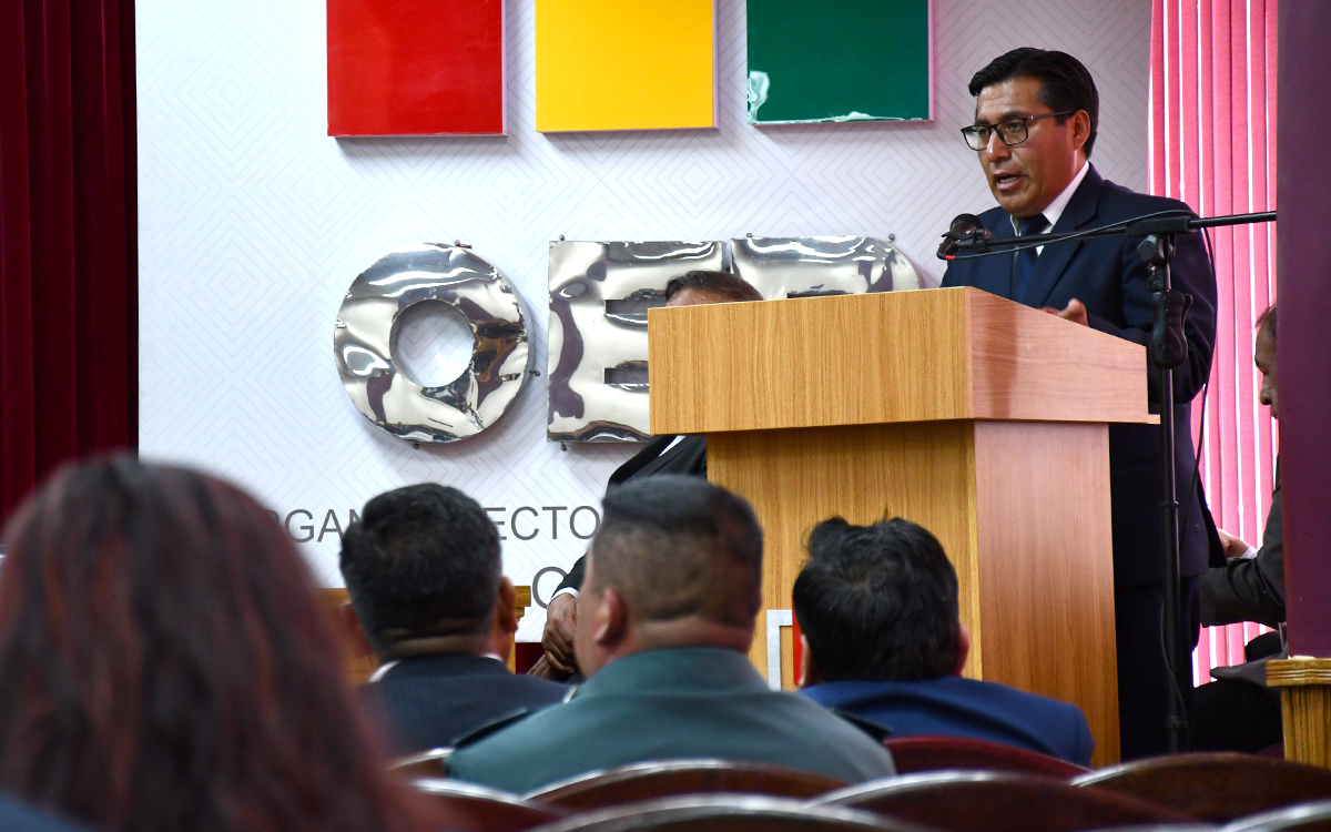 El presidente del TED Oruro, Limber Arroyo, durante la Rendición Pública de Cuentas 2024, Proyecciones e Inauguración del Año Electoral 2025, dio a conocer que existen dos actividades relevantes que serán el reto de la entidad para esta gestión, “se tiene prevista la realización de las Elecciones Generales para el 10 de agosto; pero también se debe supervisar la elección para la conformación del autogobierno en Uru Chipaya, con proyección a llevarse adelante el segundo semestre del año”, recalcó el presidente Arroyo.