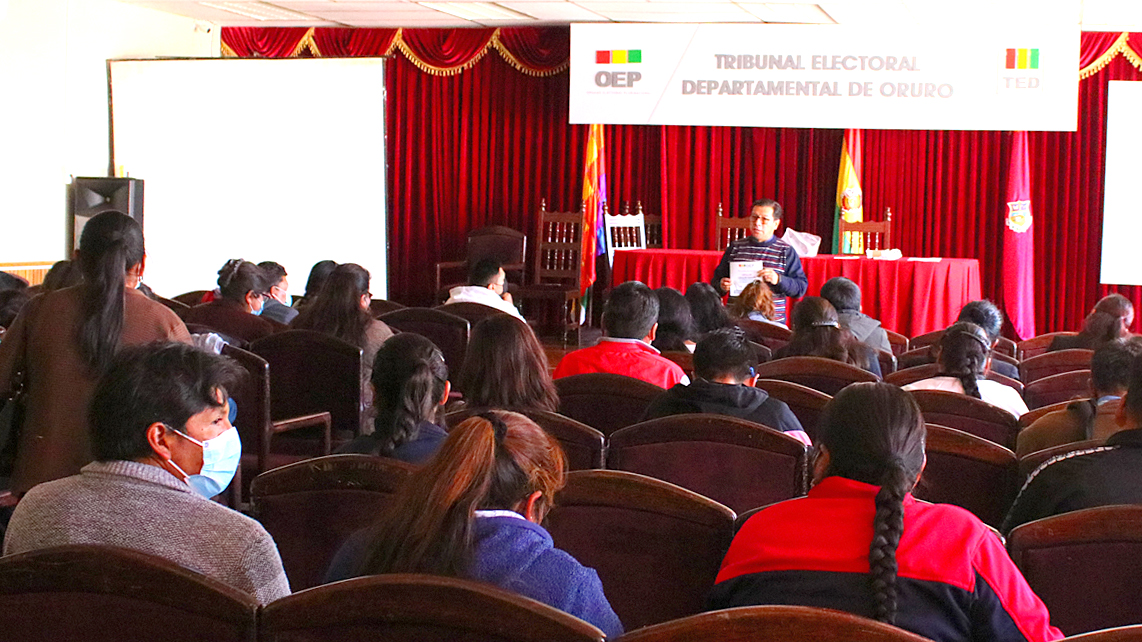 A 29 días de los comicios, 97 maestras y maestros de los municipios de Eucaliptus, Soracachi, Toledo, Santiago de Andamarca, Pazña, Corque, Machacamarca, Poopó, Huanuni, Huachacalla, Caracollo y Oruro se capacitan de manera presencial para fortalecer el proceso de elección de los gobiernos estudiantiles, informó la vocal del área del Sifde del Tribunal Electoral Departamental (TED) Oruro, Amelia Gutiérrez.