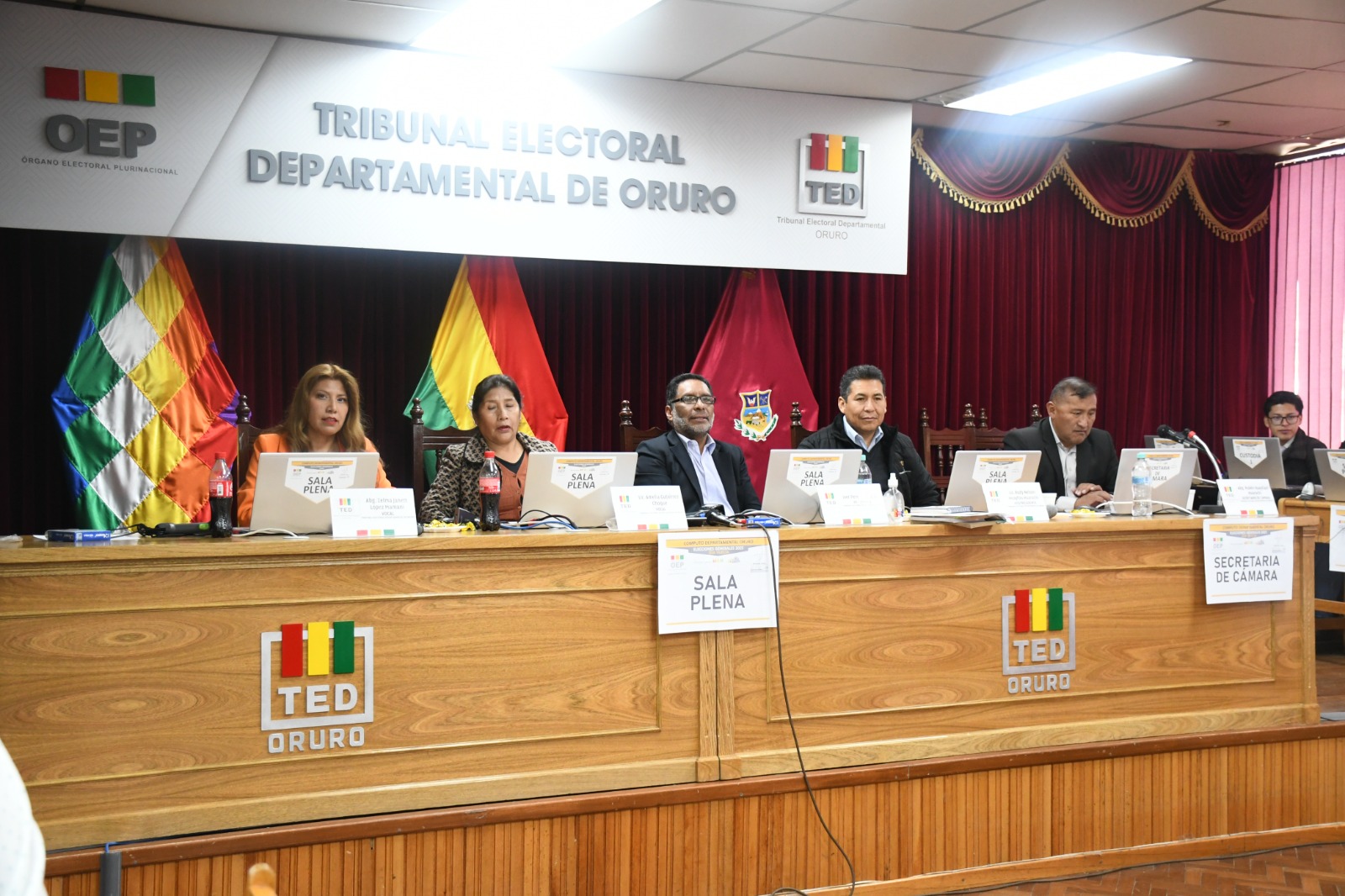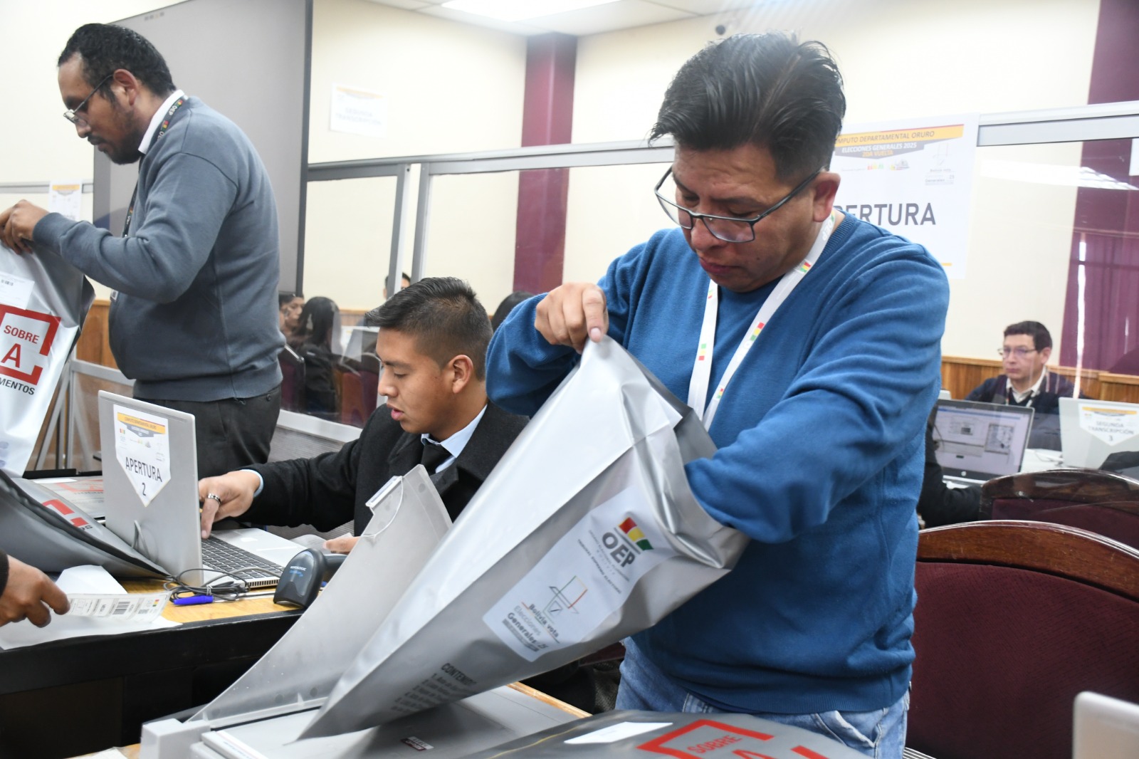 Con la presencia de observadores nacionales e internacionales, el Tribunal Electoral Departamental (TED) de Oruro concluyó este domingo el cómputo oficial de los votos correspondientes a la ciudad, con un avance del 62,43 % del total departamental. El proceso se reanudará este lunes a las 08:00 para procesar las actas provenientes de las 16 provincias.
