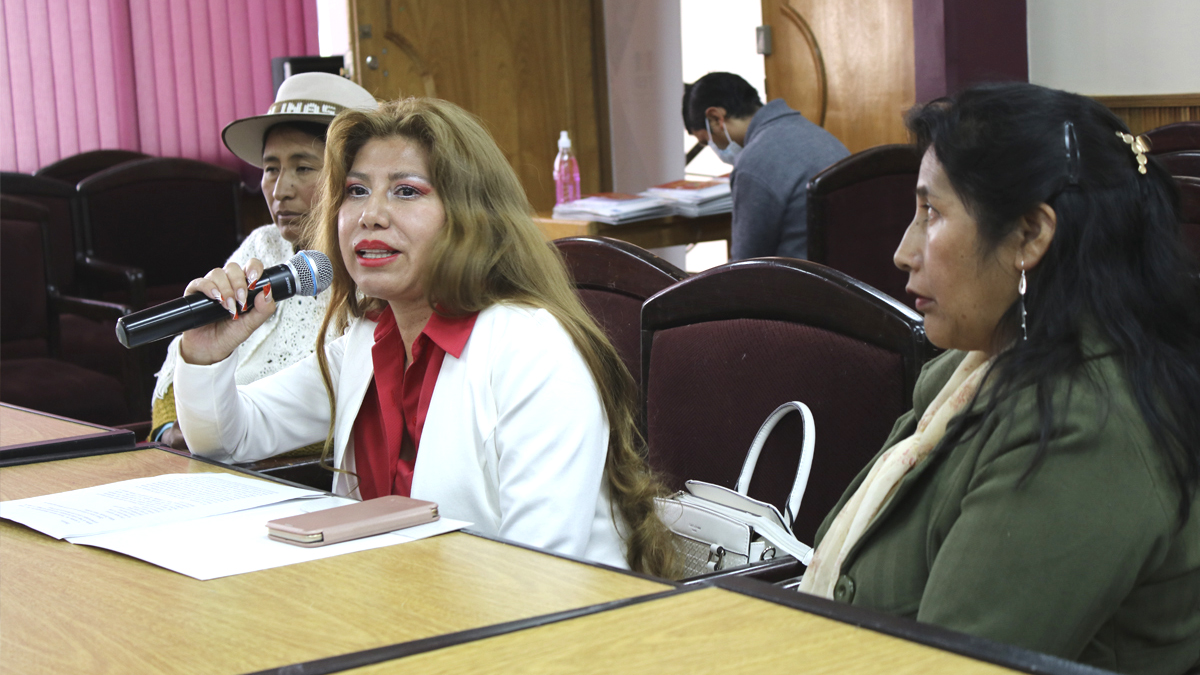 “Cualquier presupuesto que tiene que ver con la capacitación de la mujer no es un gasto, va a ser una inversión a futuro. Una mujer puede educar a muchas mujeres, a los niños en el hogar, estamos facultadas para trabajar desde la sensibilización, el conocimiento de la normativa, el respeto a nuestros derechos y los principios constitucionales”, sostuvo la representante de la UTO, Bolcha Cecilia Guzmán.