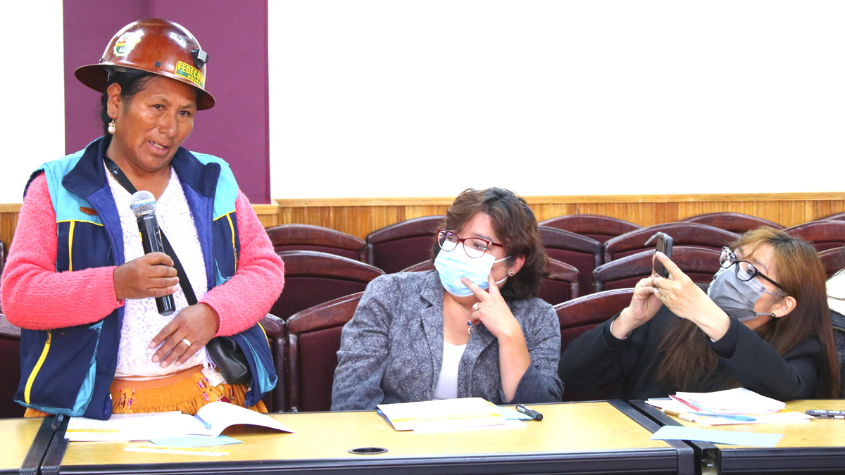 “Nosotros perforamos igual que el hombre, adquirimos las mismas enfermedades, así que igual trabajamos hombro a hombro (…) hay avances del 20 % en el directorio; pero aún nos falta conocimiento de nuestra normativa, desde la Constitución, las leyes mineras y las de género. Sabemos los nombres de las leyes; pero queremos conocer mejor los artículos”, finalizó.