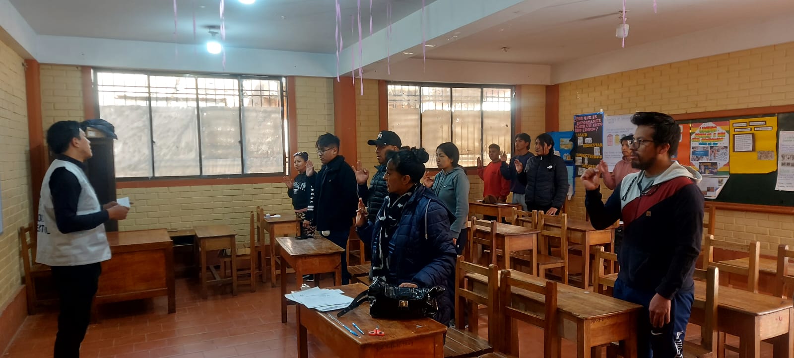 En la U.E. Alto Oruro se lleva a cabo la capacitación de jurados electorales.