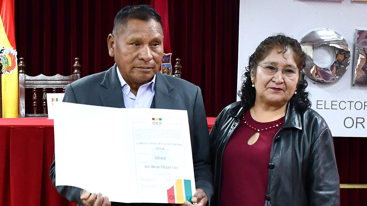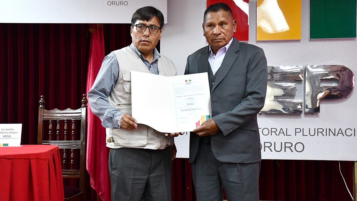 Ante la renuncia voluntaria de la exlegisladora Natividad Cruz, el Tribunal Electoral Departamental (TED) de Oruro entregó, este viernes 26 de enero, su credencial al asambleísta por territorio de la provincia Litoral, Arturo Contreras, en calidad de asambleísta departamental titular.
