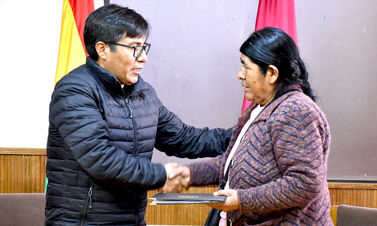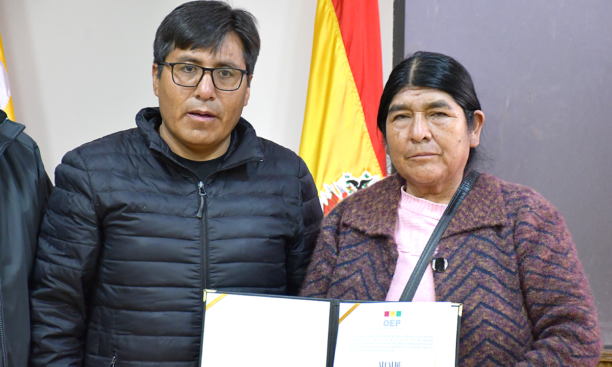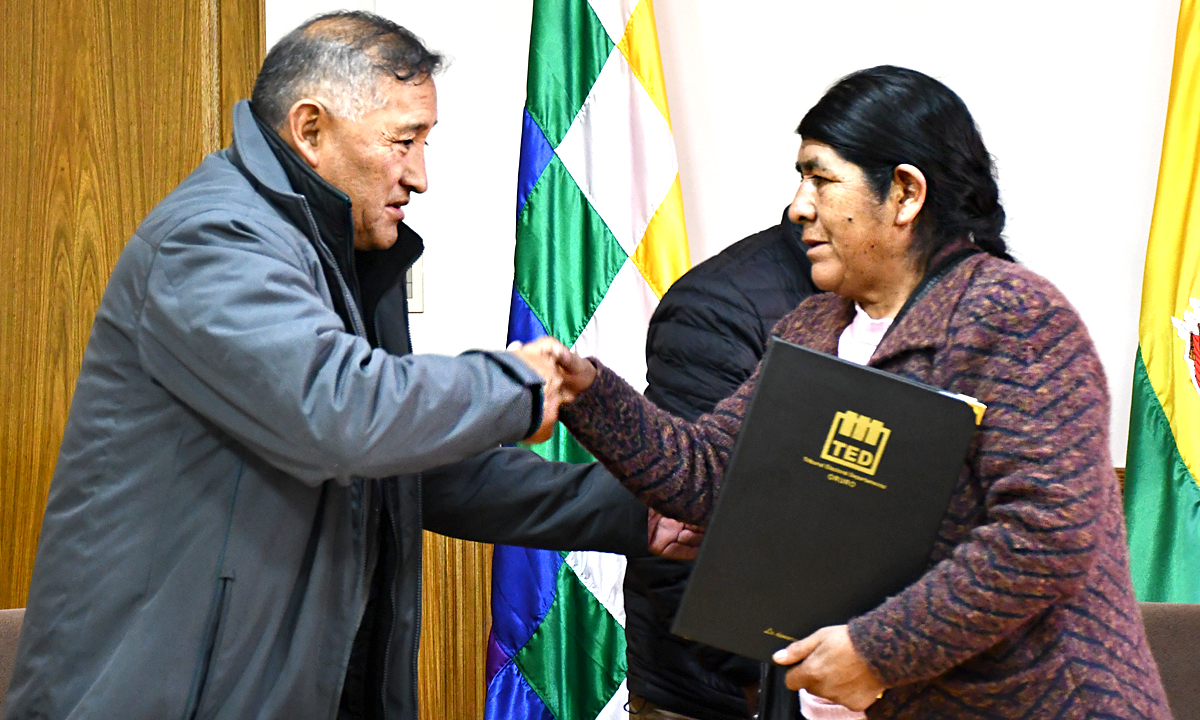 “Con esta credencial su persona, Teodora Copa, se constituye como alcaldesa titular para concluir el mandato constitucional hasta el año 2026. El Tribunal Electoral Departamental de Oruro, en el marco del artículo 192 de la Ley del Régimen Electoral y el artículo 286, numeral 2, de la Constitución Política del Estado, realiza la entrega del credencial en mérito a la Resolución TEDO-SP-182”, remarcó el presidente Arroyo.