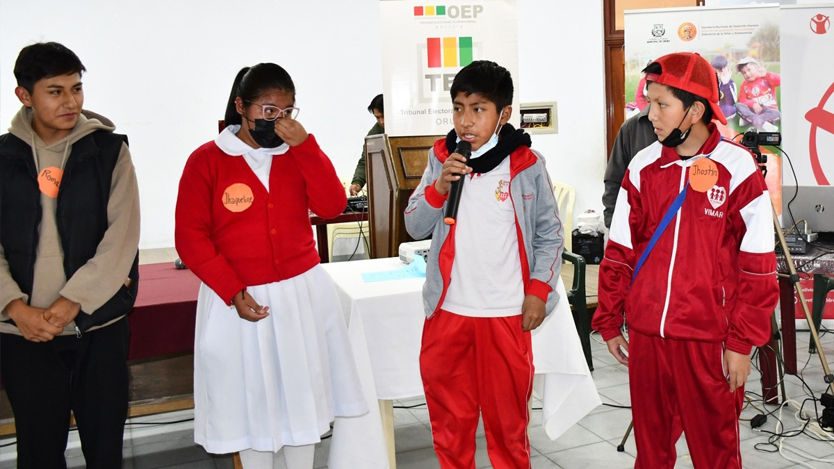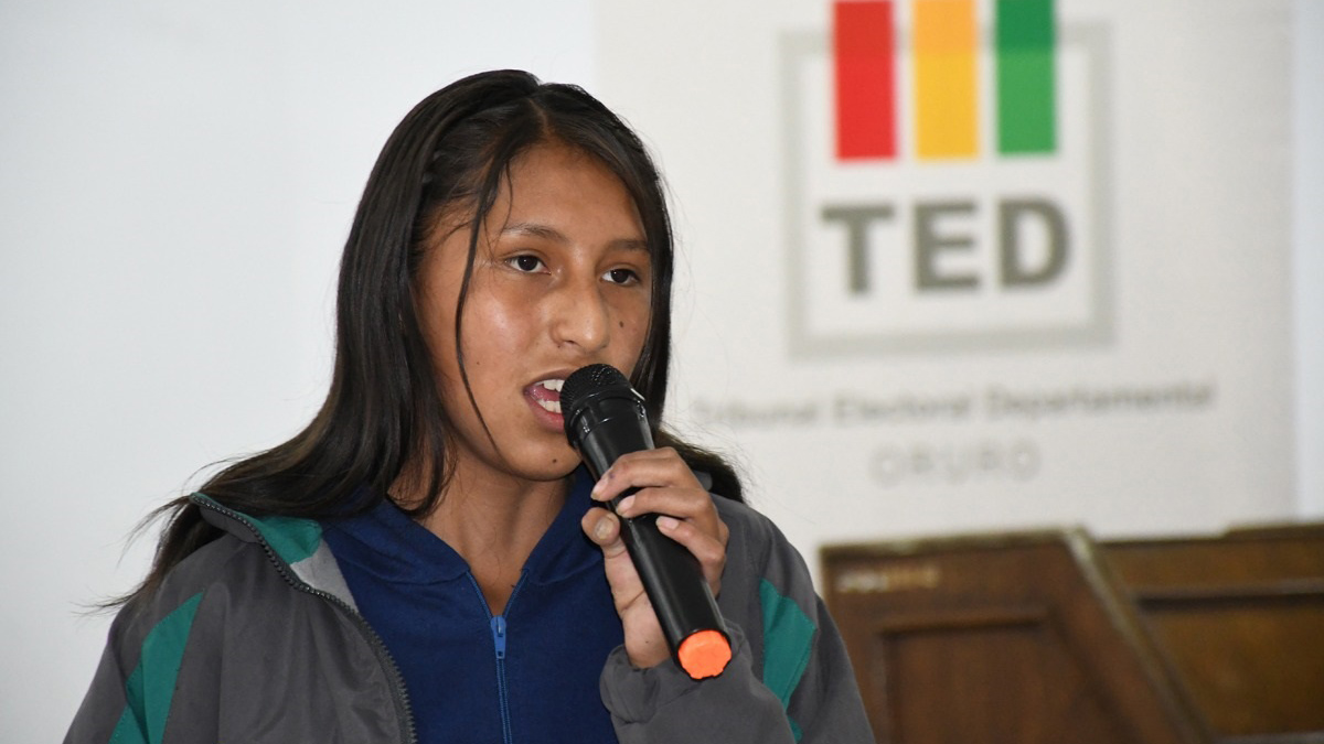 Con el apoyo técnico del Tribunal Electoral Departamental (TED) de Oruro y la participación de aproximadamente un centenar de estudiantes menores de edad, este viernes 20 de octubre se eligió a la estudiante Jazmín Espejo Nina, de la unidad educativa 3 de Mayo, como la nueva presidenta del Comité de Niñas, Niños y Adolescentes del municipio de Oruro para la gestión 2023-2025.