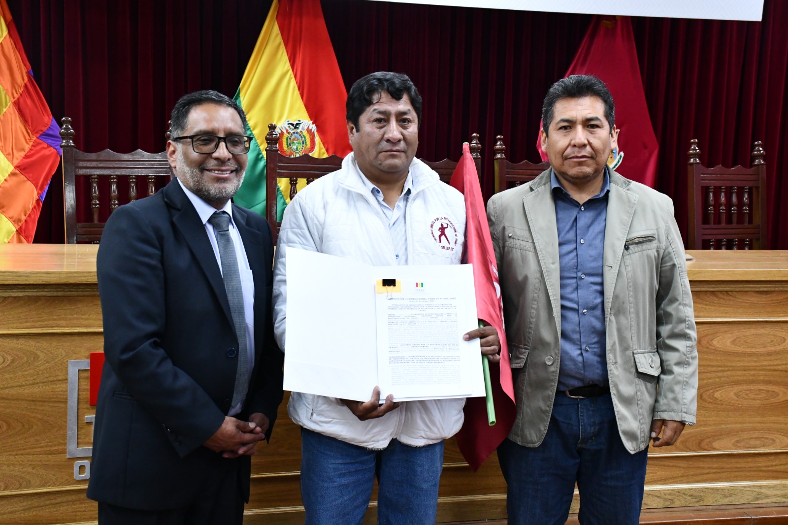 La acreditación fue otorgada por el vicepresidente del TED Oruro, Rudy Huayllas, al promotor y presidente de la agrupación, Fremioth Ayaviri, durante un acto realizado en el auditorio institucional.