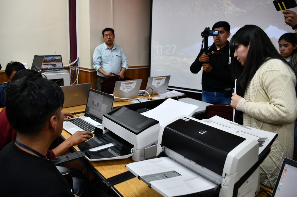 Durante la jornada, el equipo técnico simuló todo el flujo de trabajo: desde la recepción del sobre de seguridad “A”, la digitalización de actas y el ingreso de datos, hasta el juzgamiento de actas observadas, la consolidación de resultados y su carga en el sistema oficial del Órgano Electoral Plurinacional.