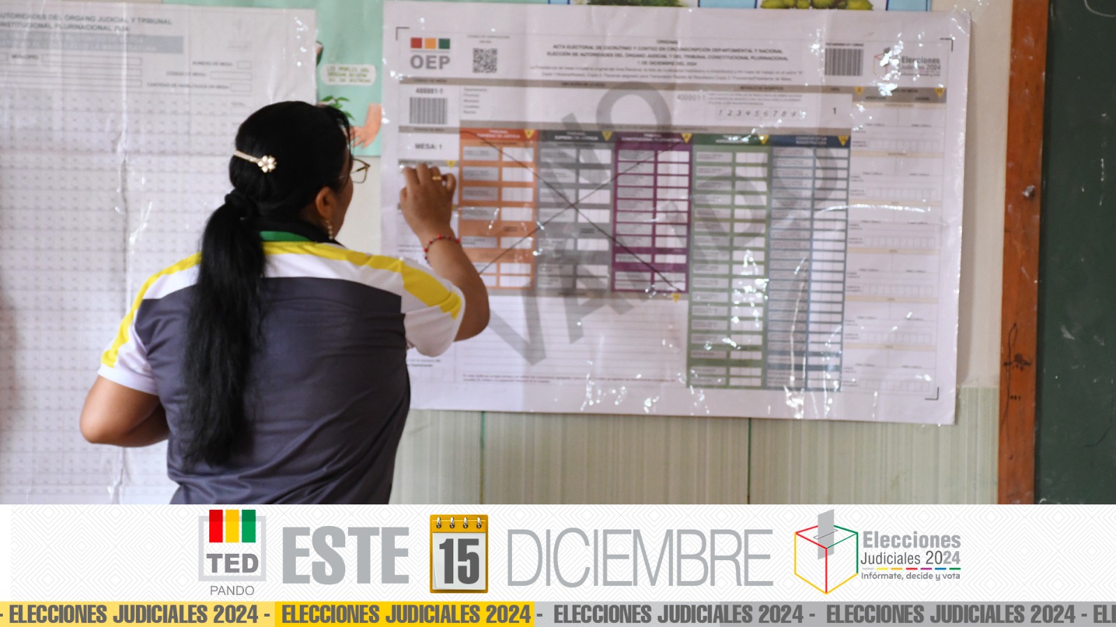 En el asiento electoral de Cobija, existen más de 1.098 jurados electorales distribuidos en 183 mesas de sufragio. A nivel departamental, en Pando se cuenta con 2.370 juradas y jurados electorales para un total de 395 mesas de sufragio.