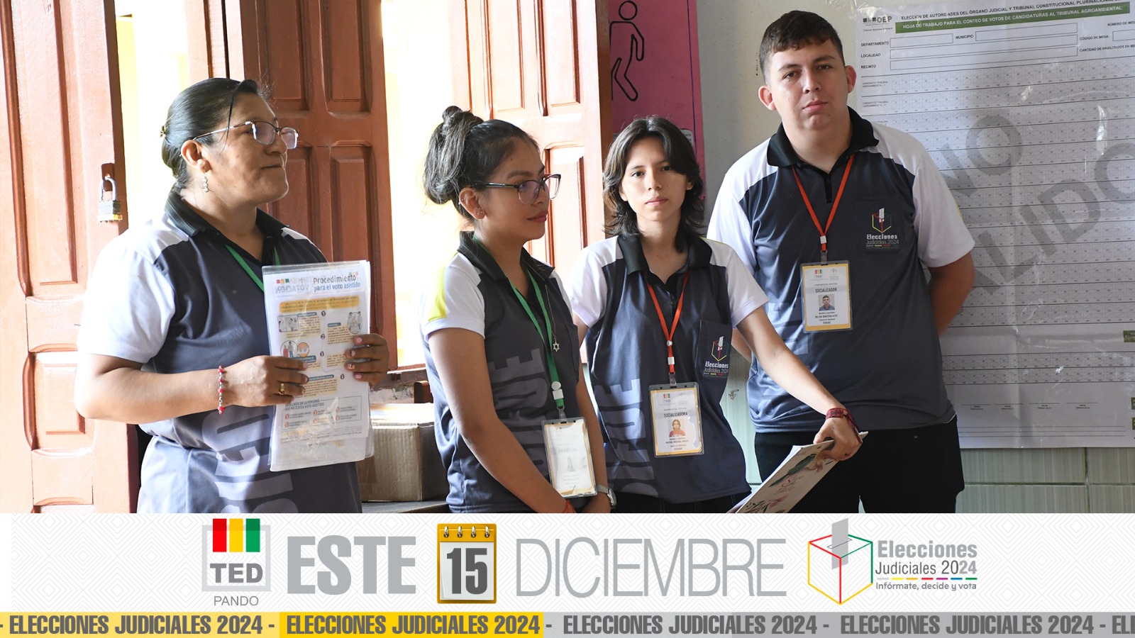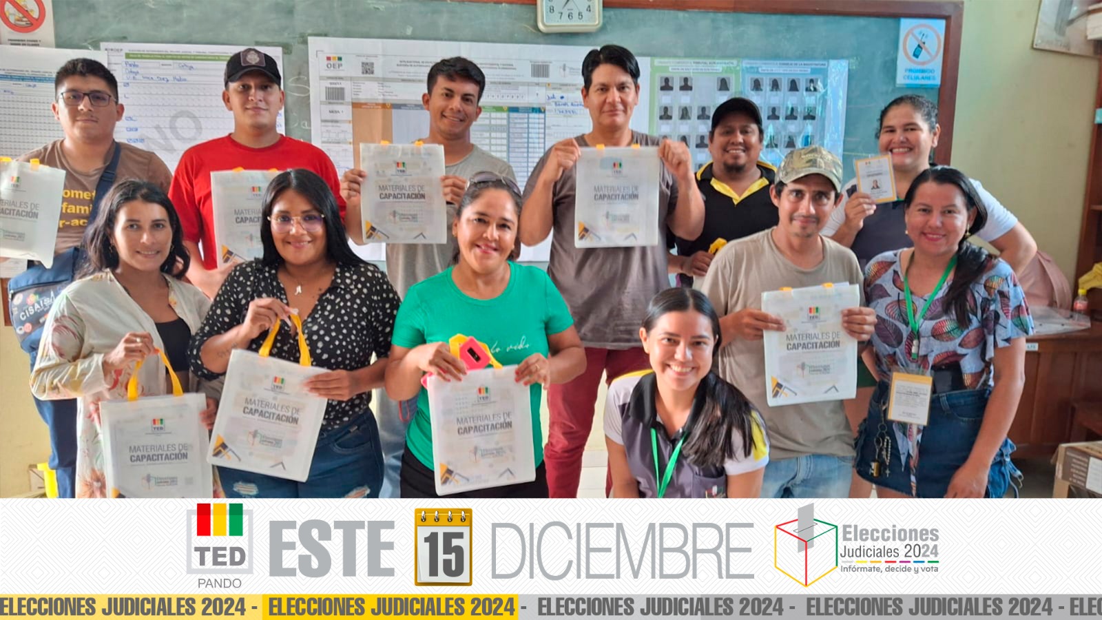 Se llevó a cabo una capacitación en 28 recintos electorales para juradas y jurados de mesas de sufragio, quienes ejercerán como máximas autoridades durante las Elecciones Judiciales 2024. En este marco, el vicepresidente del TED Pando, Moisés Díaz, visitó varios recintos electorales para enfatizar la importancia del rol de las y los jurados en el proceso electoral. "Son ustedes que administran los procesos electorales, es el ciudadano como jurado de mesa que tiene una gran responsabilidad, que el país les agradece", destacó Díaz.