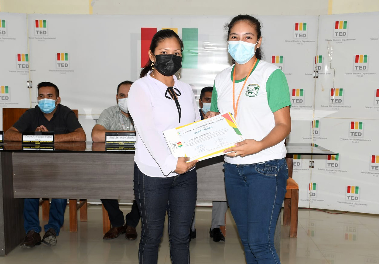 HomeTED Pando entrega certificados de reconocimientos a participantes de la III Olimpiada de la Democracia Intercultural EST 10