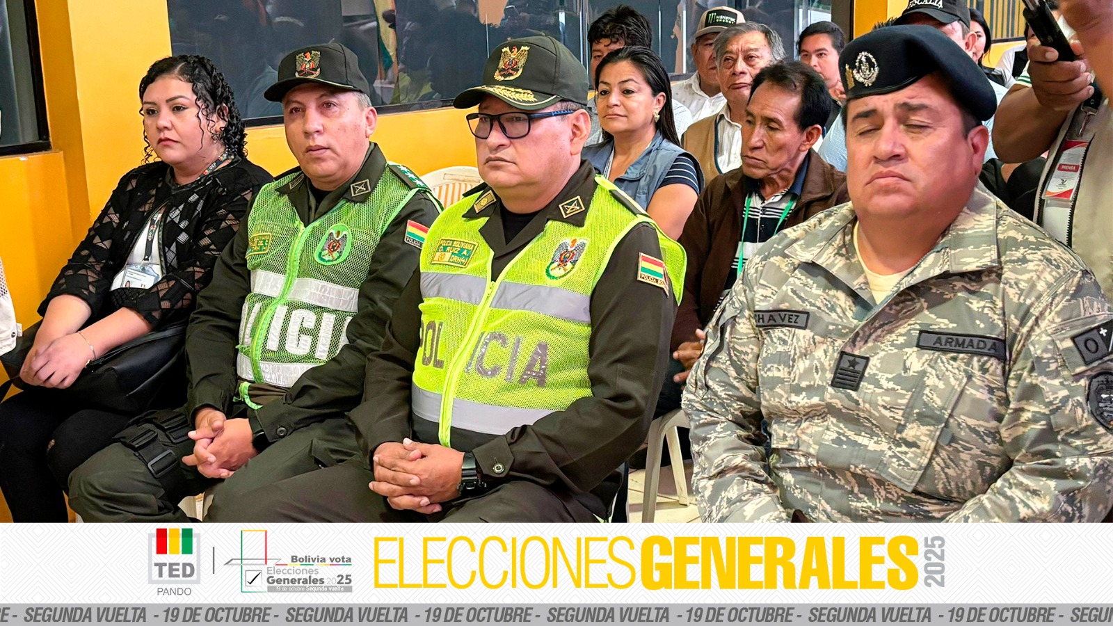 El evento contó con la presencia del vicepresidente del TED Pando, Moisés Díaz; autoridades del Comando Departamental de la Policía Boliviana; del Comando Estratégico Operativo Amazónico (CEOA); de la Fiscalía Departamental; de la Defensoría del Pueblo; delegados políticos, medios de comunicación y servidores públicos de la institución electoral.