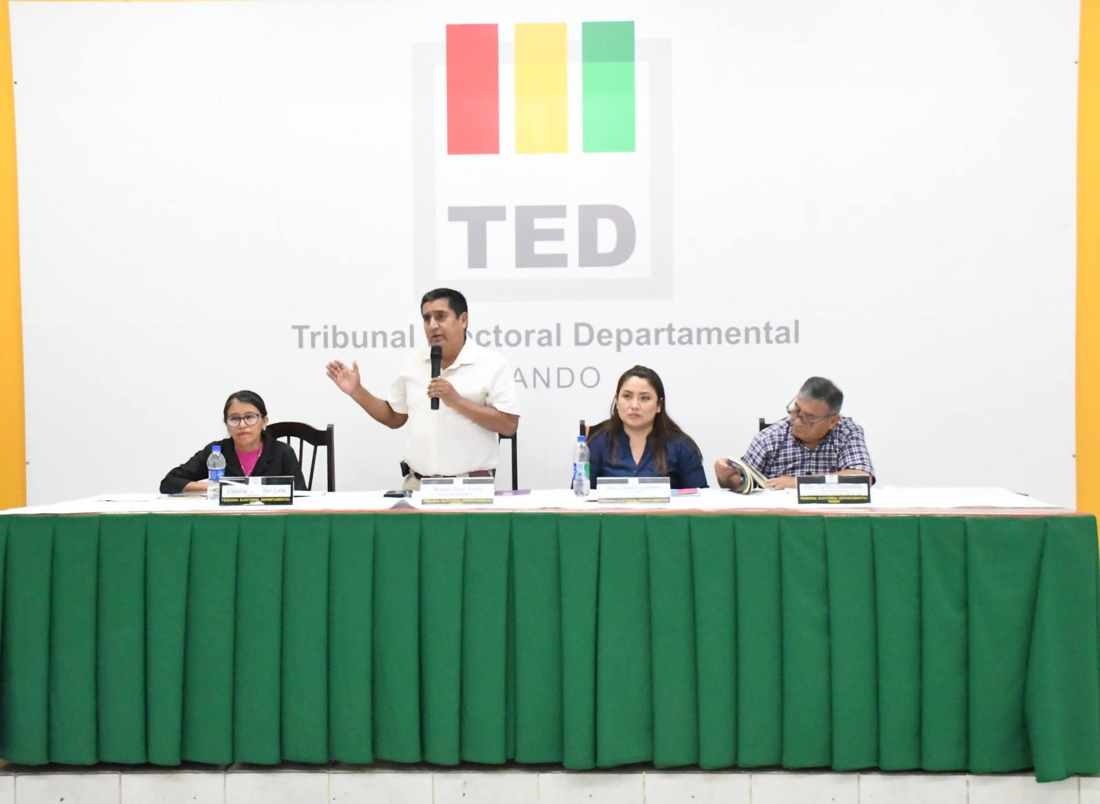 El acto de presentación tuvo lugar en ambientes del TED Pando, este 20 de junio, y contó con la presencia del vicepresidente del TED Pando, Moisés Díaz, el director de la carrera de Ciencias Políticas y Gestión Pública de la Universidad Amazónica de Pando (UAP), Tito Zurita, así como estudiantes de esta carrera.