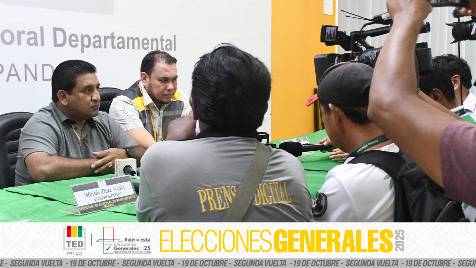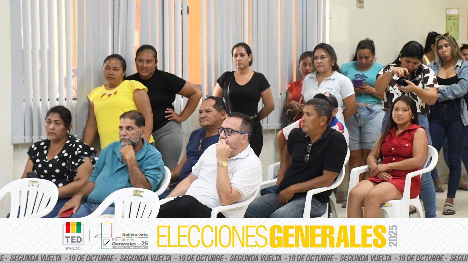 La Sala Plena estuvo encabezada por el presidente del TED Pando, Levi Salez, acompañado por los vocales José Antonio Oliveira y Moisés Díaz, quien por motivos de salud participó de manera virtual. Al acto también asistieron los medios de comunicación y delegados políticos.
