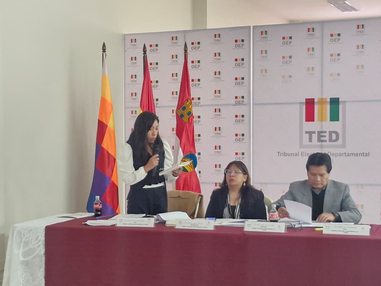 El acto de inauguración fue presidido por el presidente del TED Potosí, Víctor Vega, y contó con la participación de la vicepresidenta de la institución, Patricia Iñiguez; así como de los vocales Karina Condori y Rodolfo Vera.