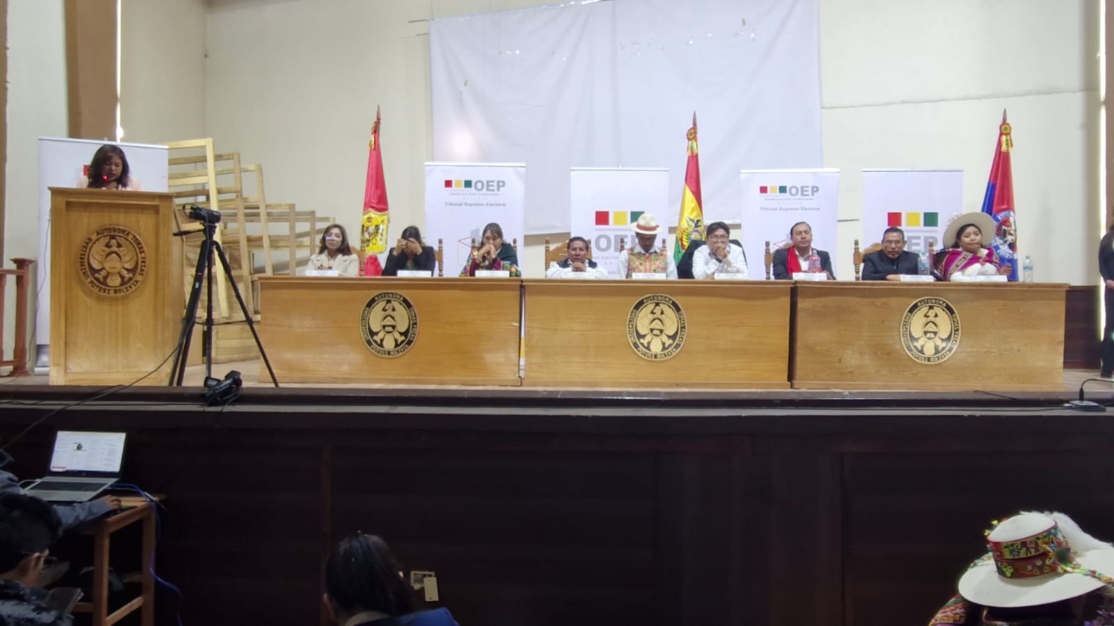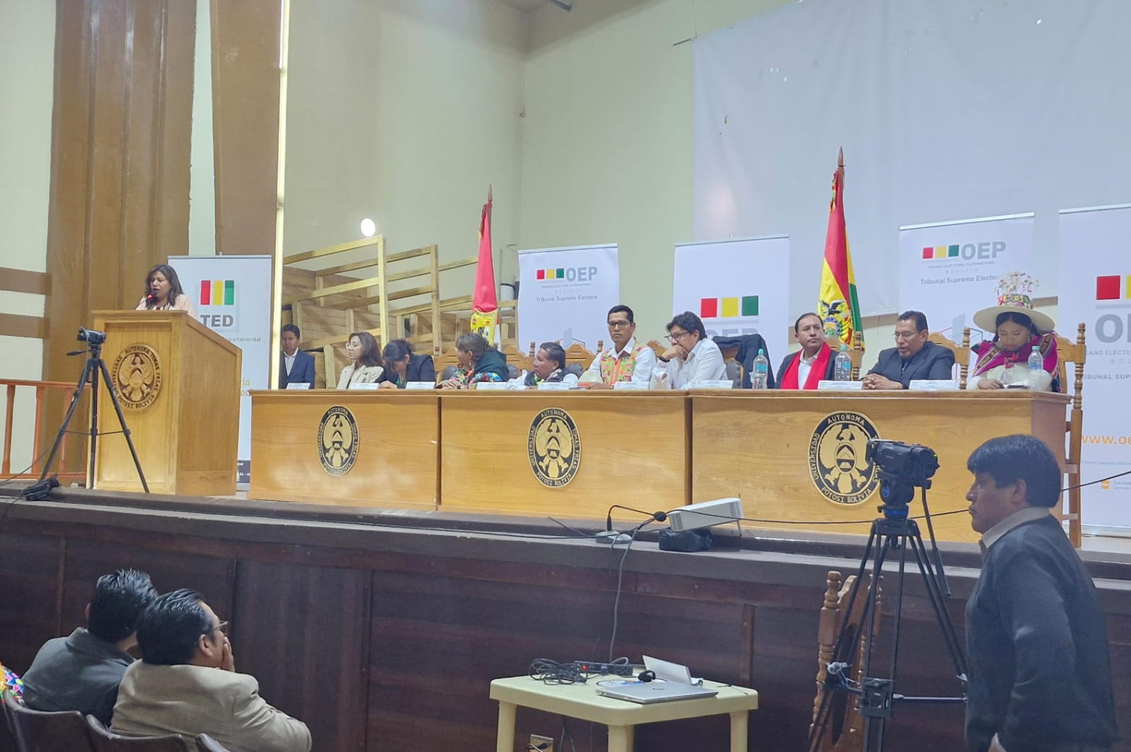 La vocal del Tribunal Supremo Electoral, Nelly Arista; la presidenta del Tribunal Electoral Departamental de Potosí, Rocío Mamani, el vicepresidente Rolando García, junto a autoridades invitadas, instituciones y organizaciones de la sociedad civil fueron partícipes del último foro realizado en la capital del departamento Potosí.