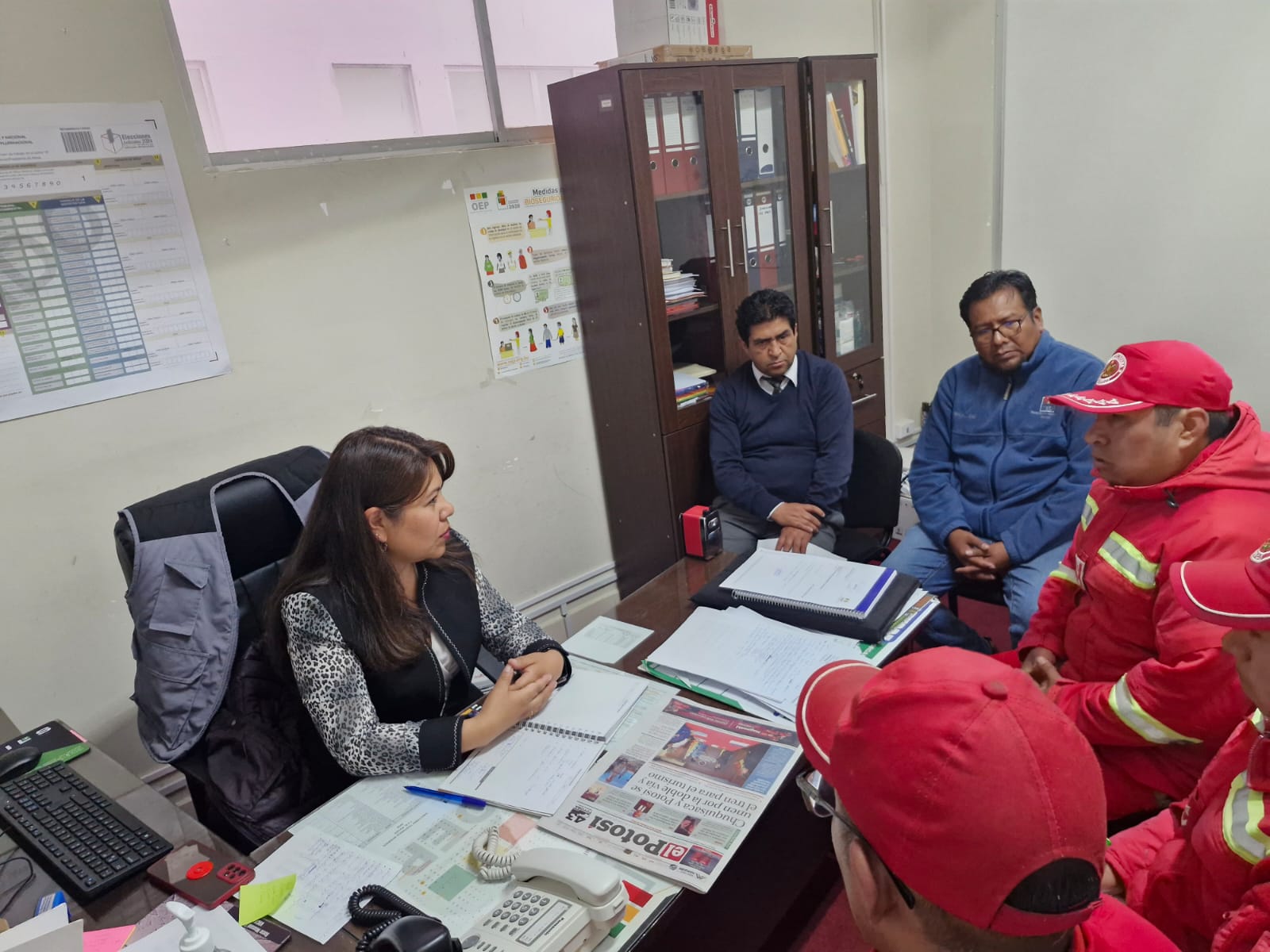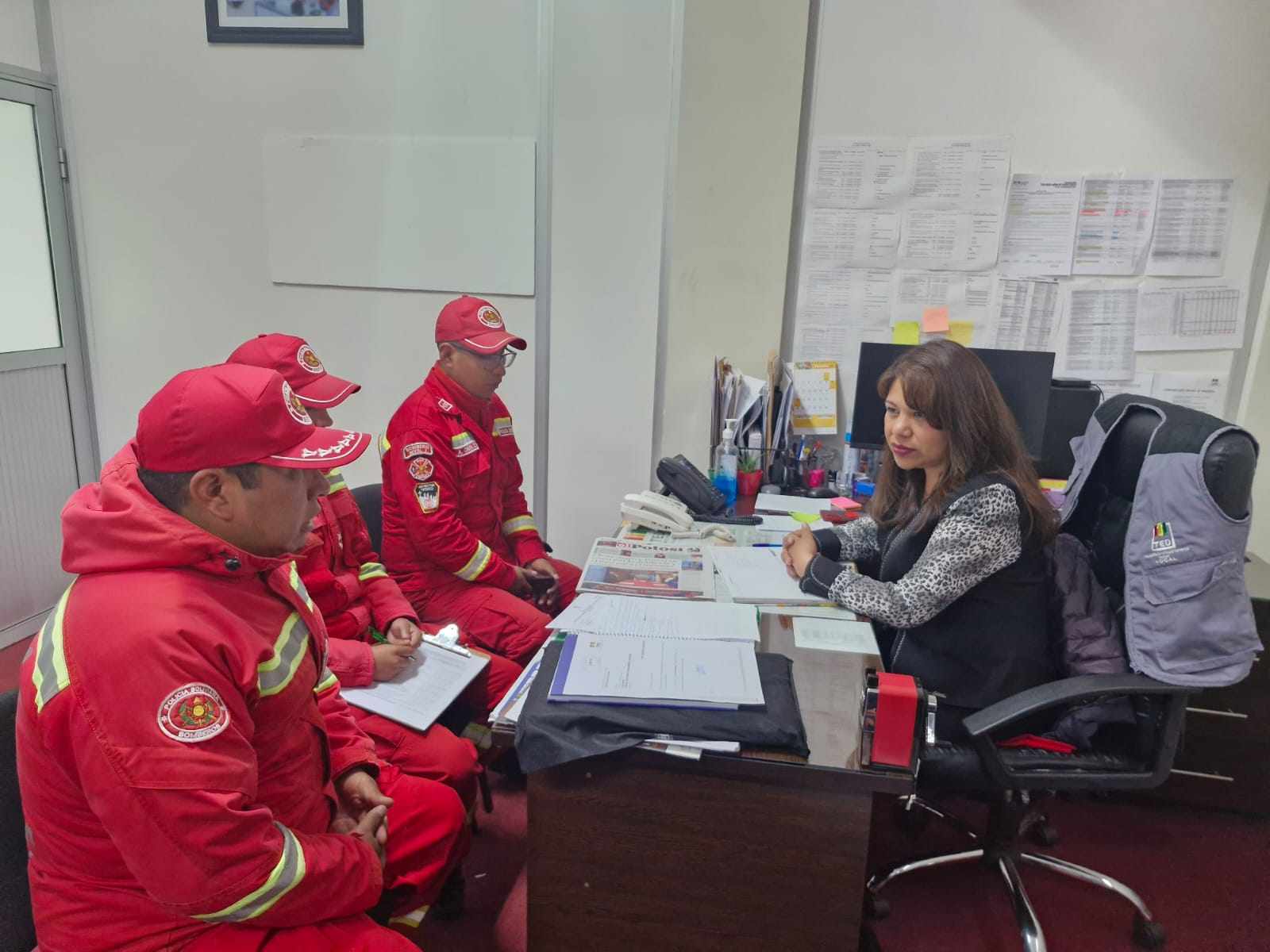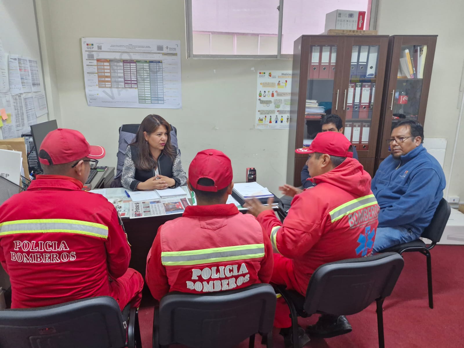Asimismo, se coordina el trabajo conjunto con los bomberos, que consiste en la planificación de seguridad en la infraestructura donde se realizará el cómputo electoral. El plan permitirá actuar de manera inmediata ante situaciones de emergencia, como disturbios o incendios, mediante la implementación de protocolos de respuesta rápida. De igual forma, se incluirán protocolos de evacuación que prioricen la seguridad del personal, la protección de las actas electorales y la evacuación ordenada de los ciudadanos presentes.