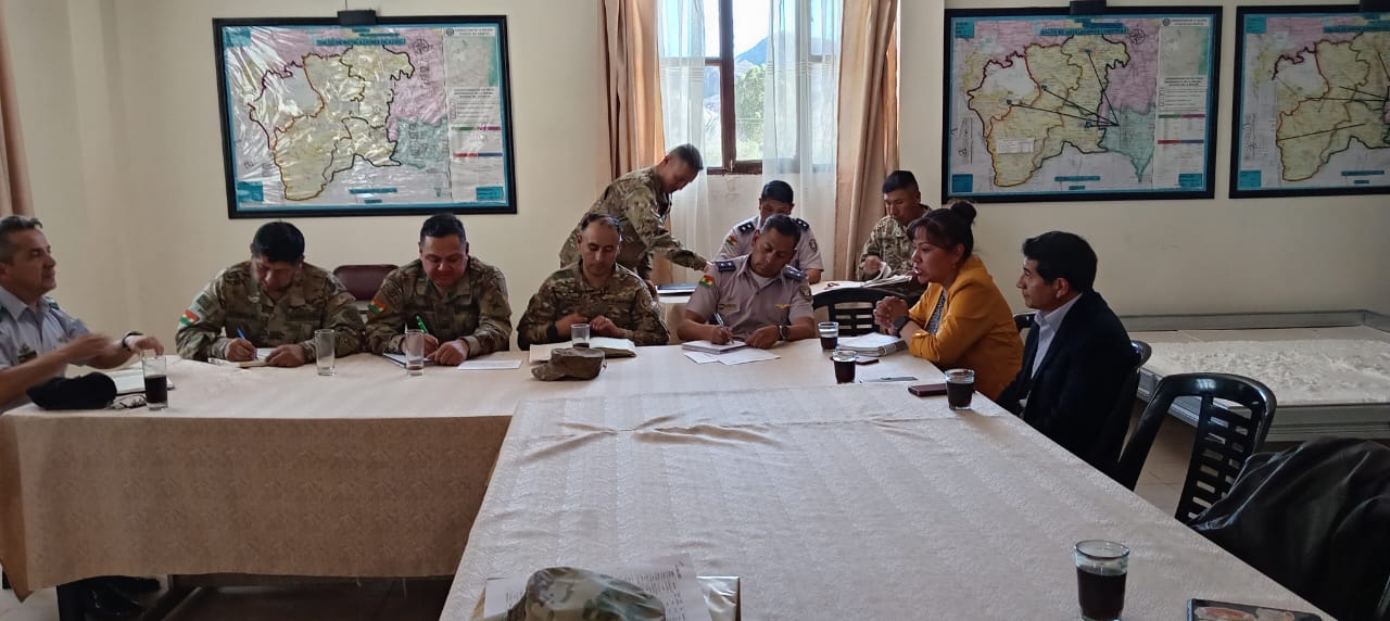 La presidenta del Tribunal Electoral Departamental (TED) de Potosí, Rocío Mamani; el vocal Rodolfo Vera y el comandante de la Décima División del Ejército, Cnl. DAEN Félix Marcelo Villarroel Sanjinés, se reunieron el lunes 29 de septiembre para coordinar acciones con miras a la segunda vuelta electoral.