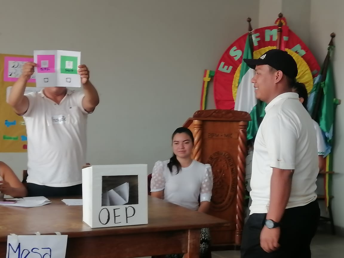 Por otra parte se informó a los estudiantes sobre el inicio de las actividades del calendario electoral para la Elección de Autoridades del Tribunal Constitucional Plurinacional, Tribunal Supremo de Justicia, Tribunal Agroambiental y Consejo de la Magistratura 2024.