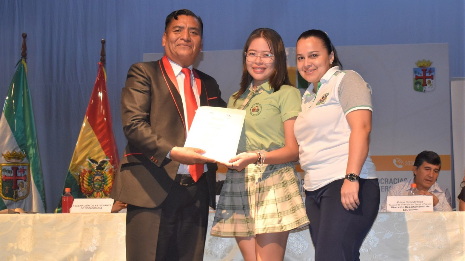 El Tribunal Electoral Departamental (TED) de Santa Cruz concluyó con la entrega de credenciales de la elección de gobiernos estudiantiles de las unidades educativas de los distritos educativos de Warnes, Porongo, La Guardia, Cotoca, Pailón, los distritos I, II, III y Plan Tres Mil de la ciudad capital, actividad que se llevó adelante este viernes 2 de junio de 2023 en el teatro del Eagles School.