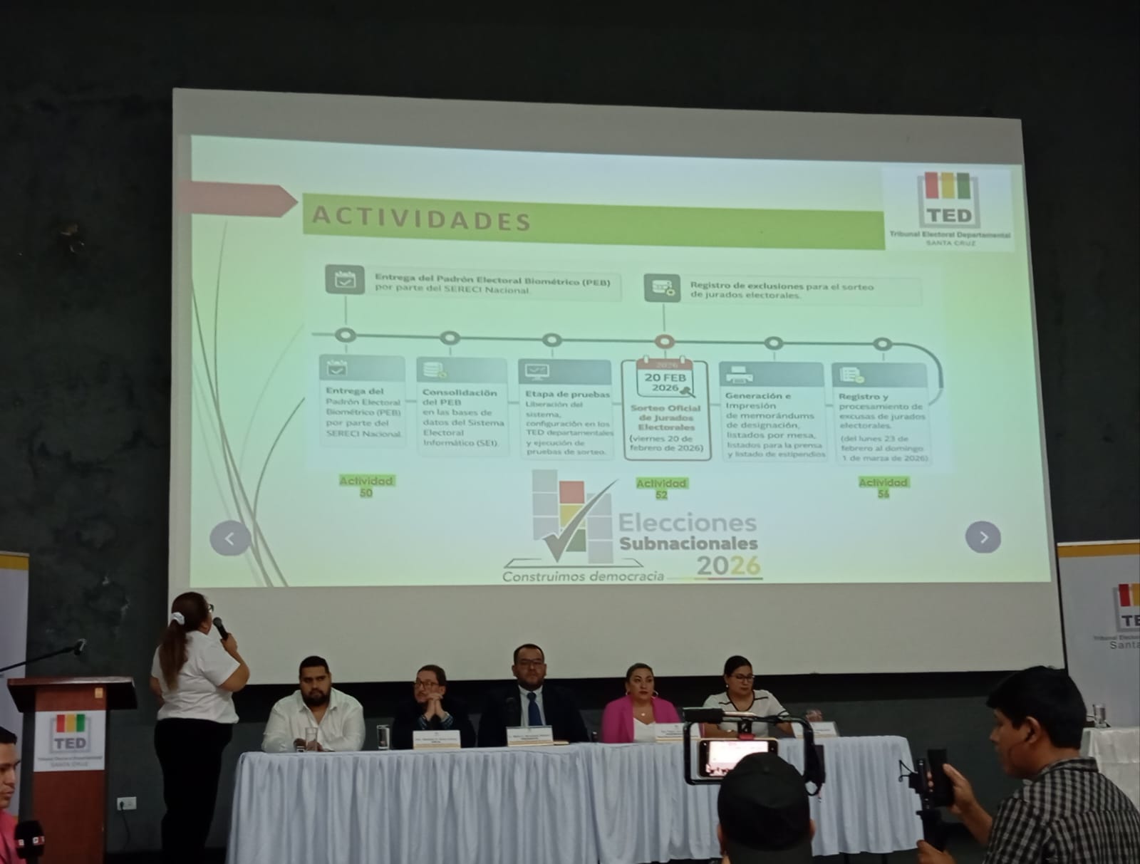 La lista de jurados electorales será publicada el domingo 22 de febrero en el sitio web del TED Santa Cruz (https://santacruz.oep.org.bo/), así como en un medio de prensa escrito de alcance departamental.