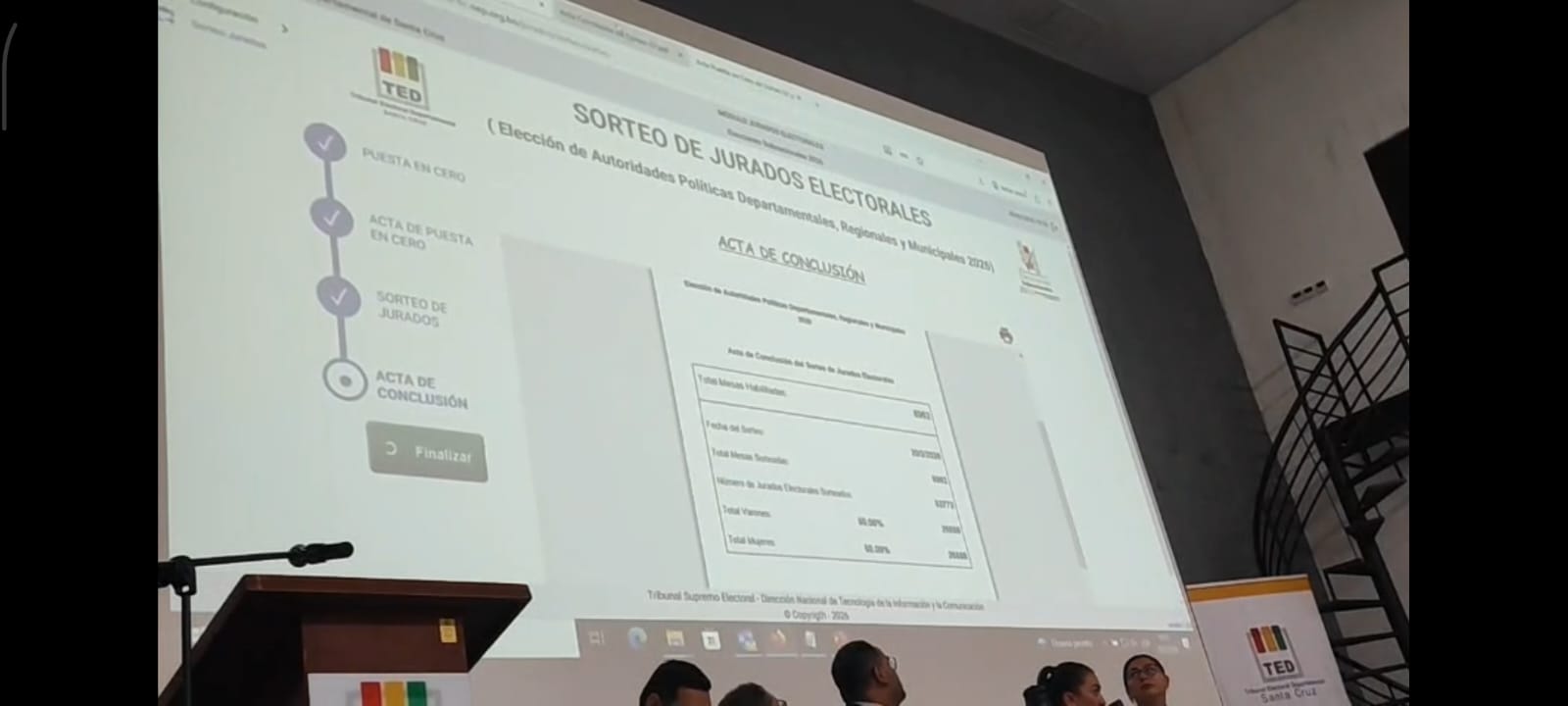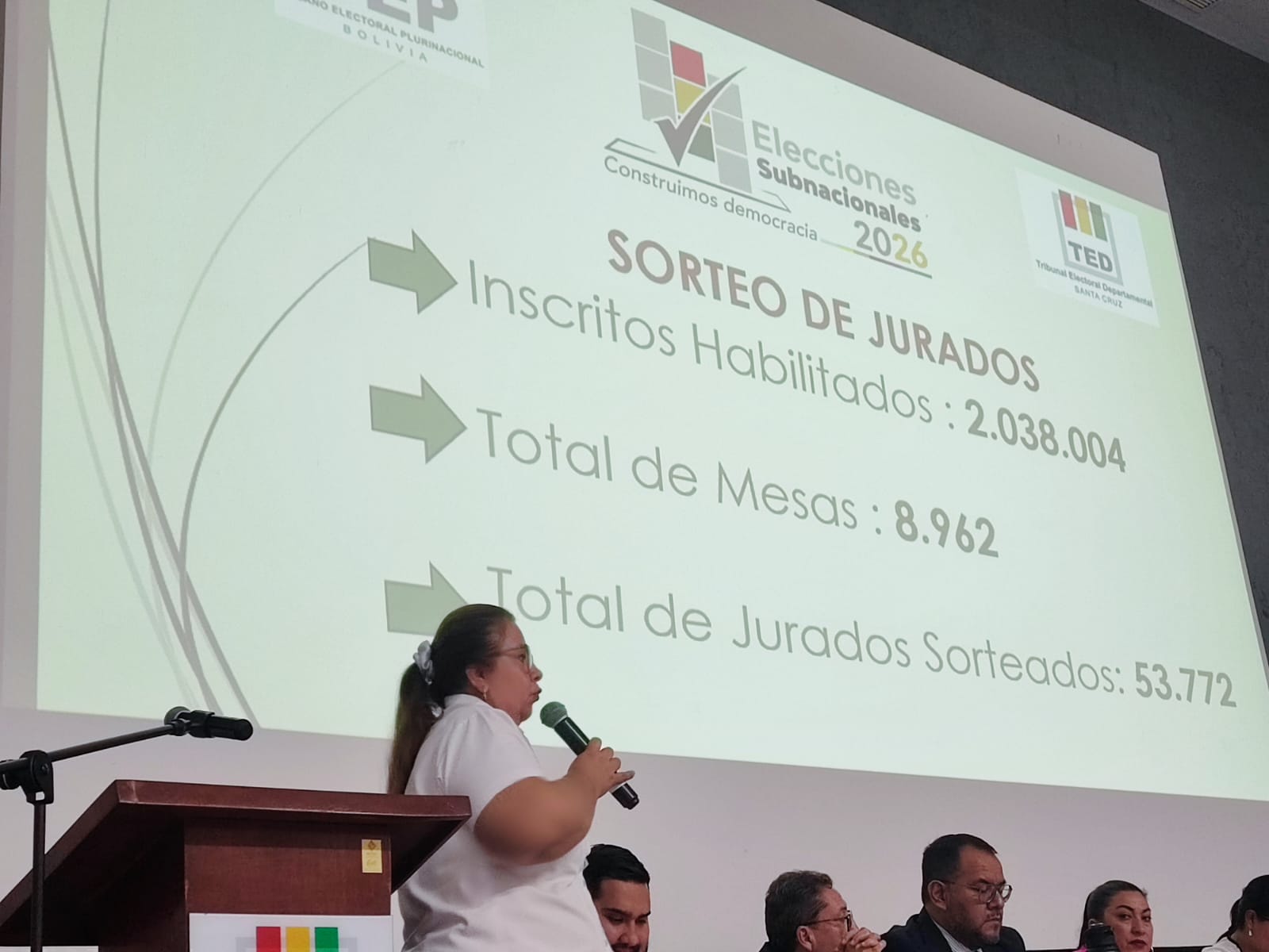 Tal como lo establece la actividad 53 del calendario electoral, el Tribunal Departamental Electoral (TED) de Santa Cruz llevó a cabo este viernes 20 de febrero el sorteo público para la selección aleatoria de 53.772 jurados electorales.