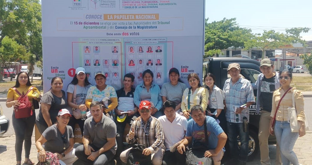 Como parte de la campaña de movilización ciudadana, el TED Santa Cruz entregó material informativo a dirigentes de la OTB La Arboleda, en el municipio de Buena Vista. Además, se socializó información sobre las Elecciones Judiciales 2024 en las principales calles y centros comerciales de la capital de la provincia Ichilo, en el mismo departamento.