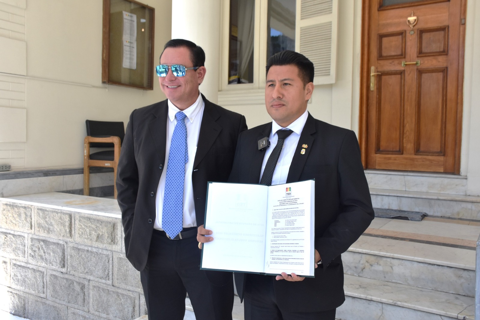 El Tribunal Electoral Departamental (TED) de Santa Cruz, a través del vicepresidente José Miguel Callejas y del vocal Marcelo Yabeta, entregó oficialmente al Tribunal Supremo Electoral (TSE) el acta del cómputo departamental, en cumplimiento de la Ley del Régimen Electoral (Ley 026).