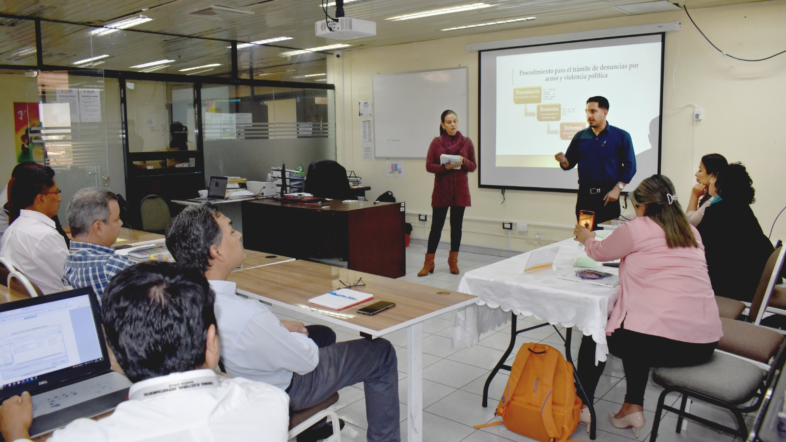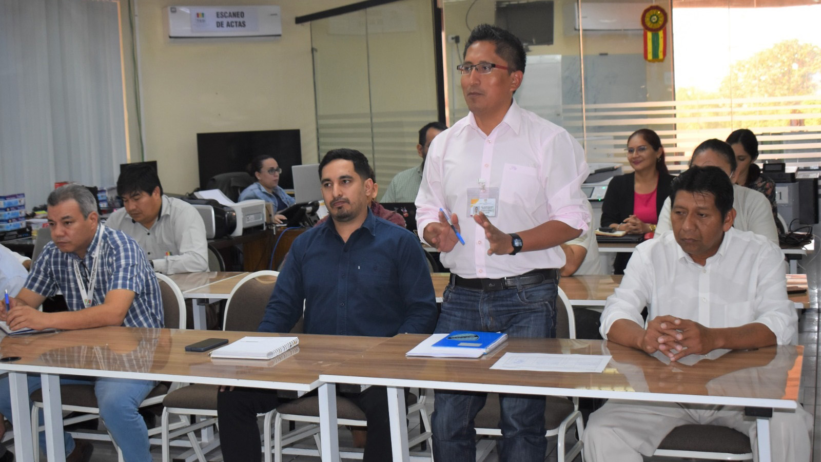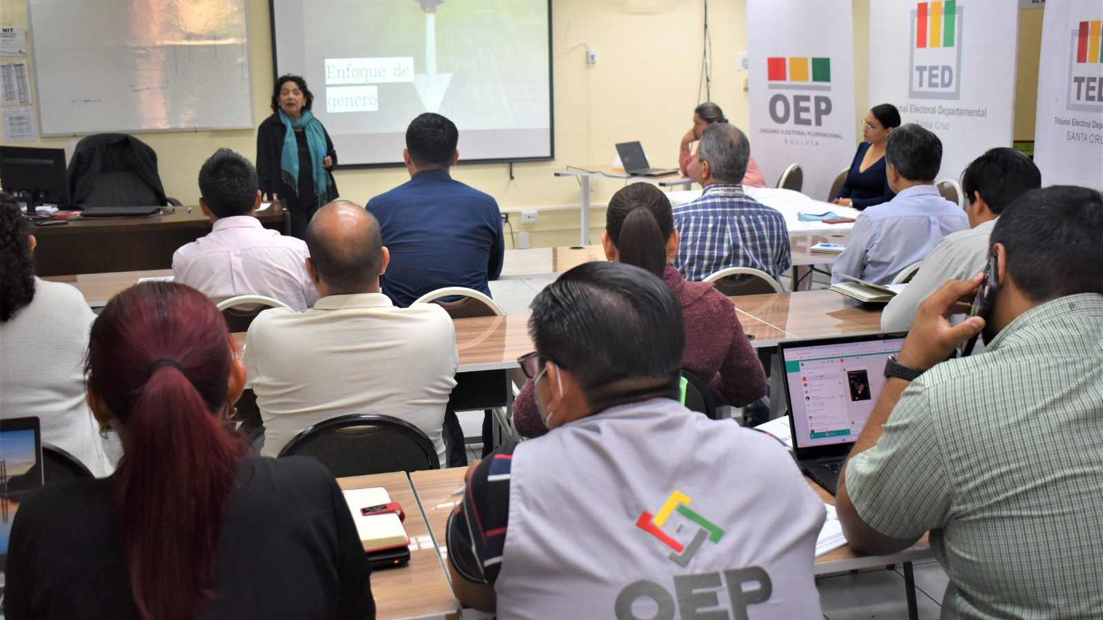 Participaron en el taller las servidoras y servidores públicos de las áreas del TED Santa Cruz como Secretaría de Cámara, Asesoría Legal, Sección Administrativa Financiera (SAF), Unidad de Geografía y Logística Electoral (UGLE), Tecnología de la Información y Comunicación (TIC) y Servicio Intercultural de Fortalecimiento Democrático (Sifde), en instalaciones de la mencionada institución.
