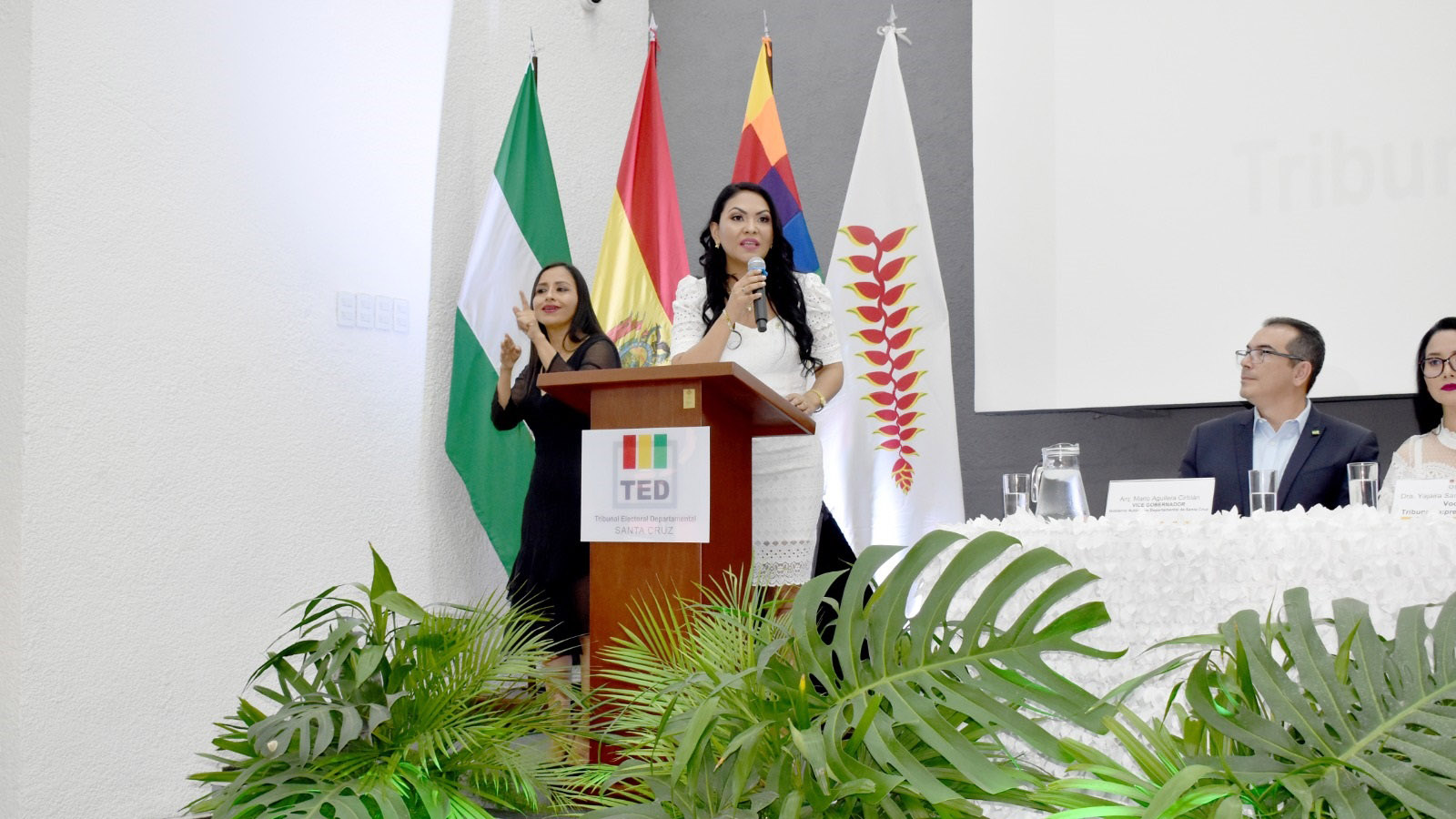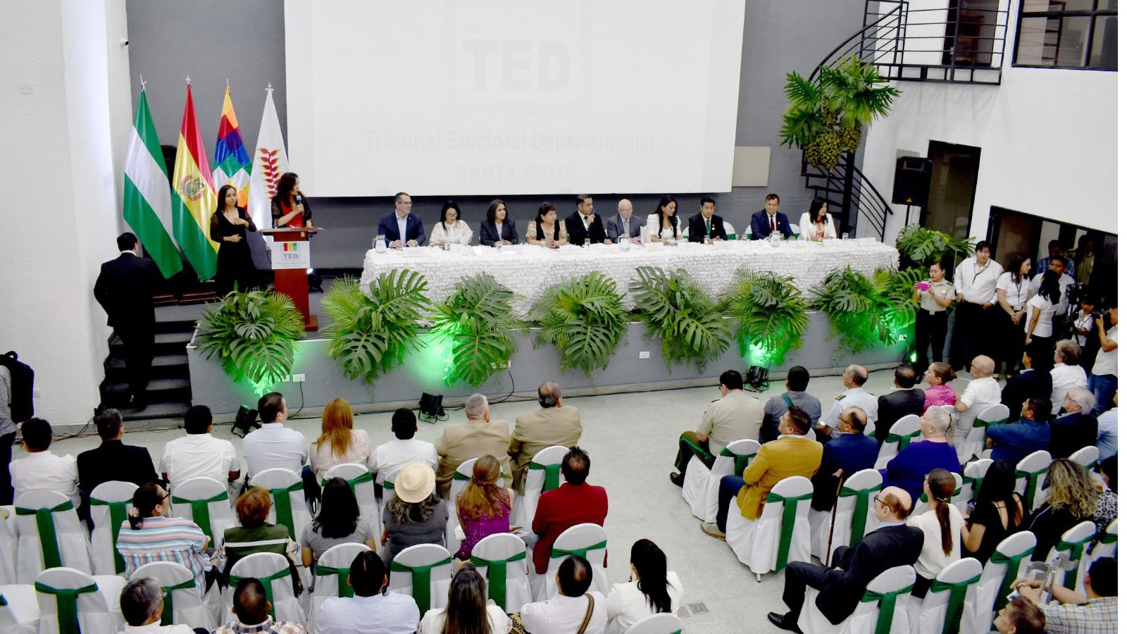 La actividad contó con la participación de autoridades nacionales, departamentales y municipales. En la oportunidad, autoridades del Concejo Municipal de Santa Cruz de la Sierra, la asambleísta del pueblo chiquitano, el Tribunal Electoral Departamental de Tarija, la Secretaría General del Gobierno Autónomo Municipal de Warnes y el Gobierno Autónomo Municipal de Ascensión de Guarayos reconocieron la labor realizada por las autoridades del TSE y del TED Santa Cruz.