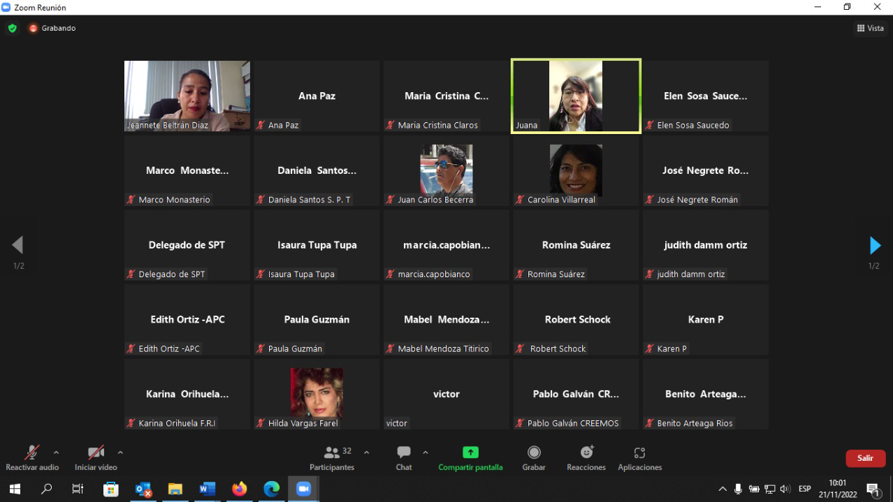 Presidenta del TED Santa Cruz, María Cristina Claros en el taller virtual.