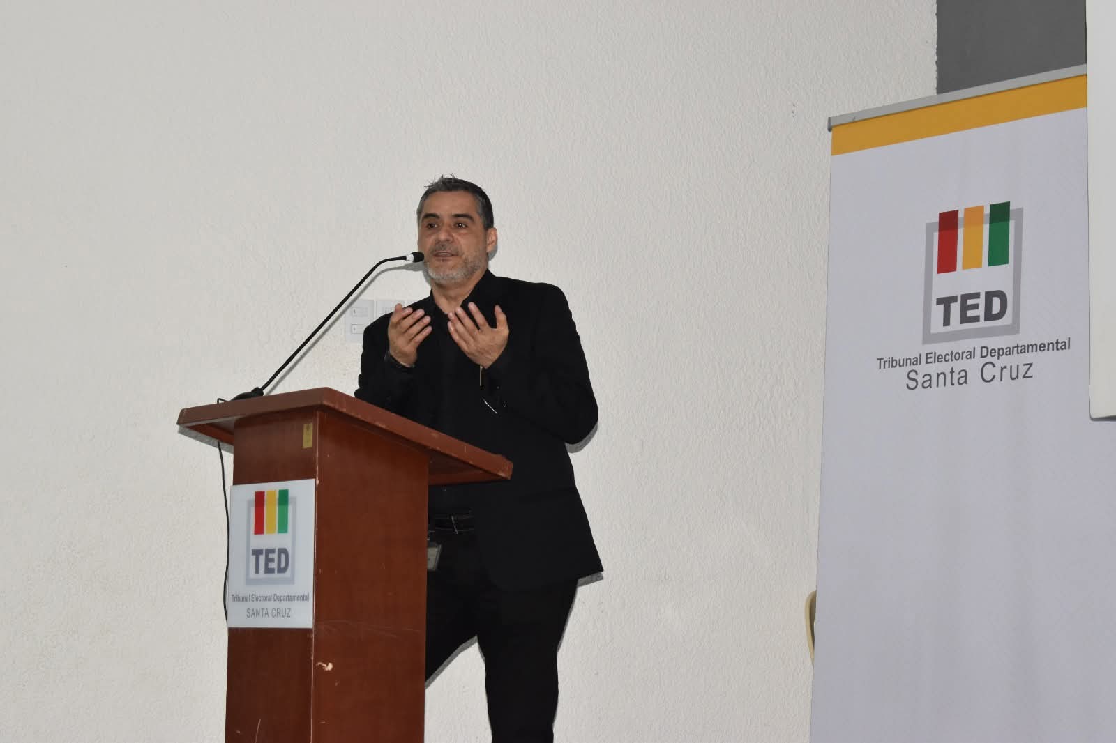 La presidenta del TED Santa Cruz, María Cristina Claros, inauguró el evento destacando la importancia de generar espacios de información y diálogo, en el marco de los principios de transparencia y publicidad.
