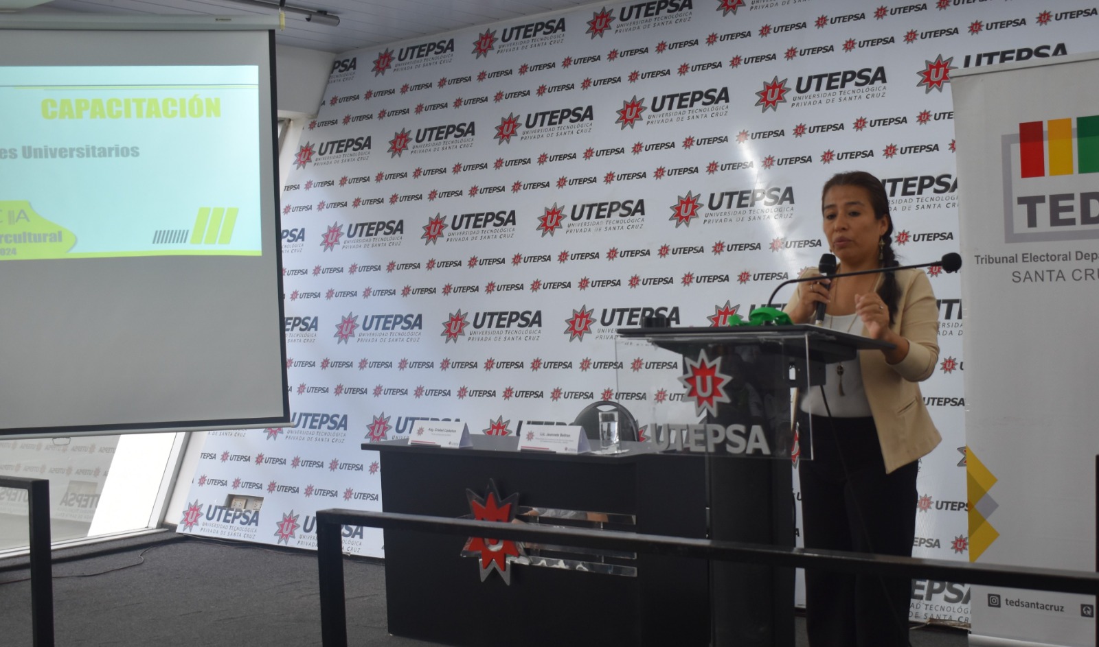 La capacitación se ejecuta en el marco del convenio suscrito en la gestión 2023 entre esta casa de estudios, el Tribunal Supremo Electoral (TSE) y el TED Santa Cruz.