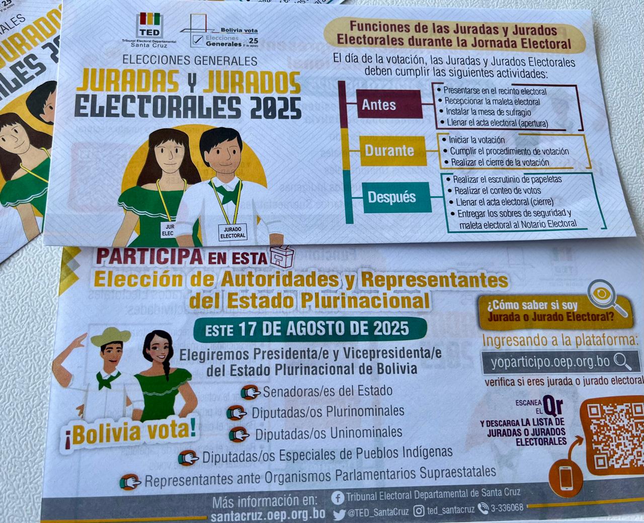 Con el objetivo de informar a la ciudadanía sobre el proceso electoral 2025, el Tribunal Electoral Departamental (TED) de Santa Cruz y la Cooperativa Rural de Electrificación (CRE) unieron esfuerzos para distribuir material informativo en distintas provincias del departamento.