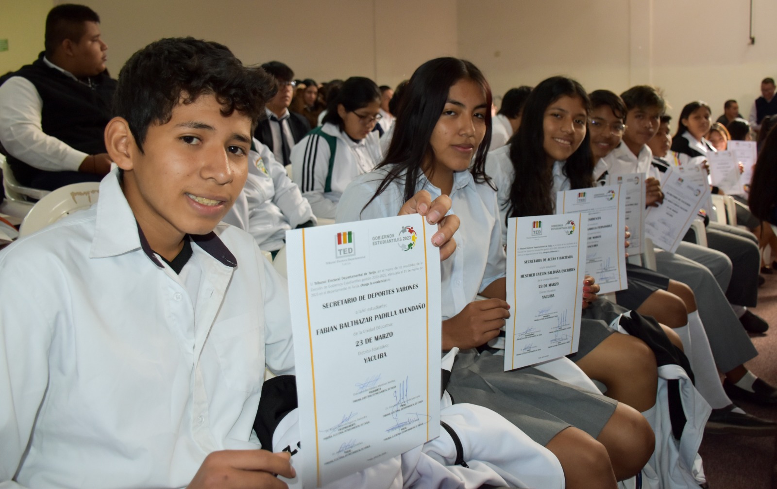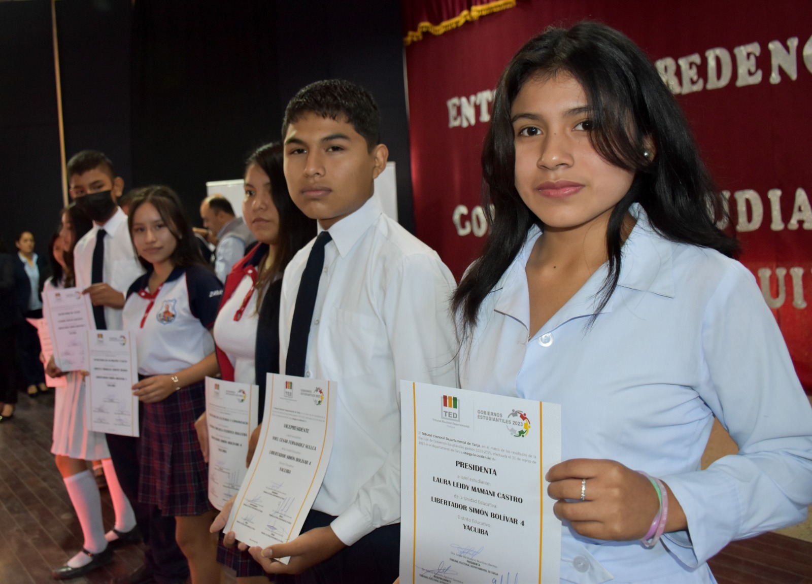 El Tribunal Electoral Departamental (TED) de Tarija entregó este miércoles 17 de mayo las credenciales a 219 estudiantes de secundaria de 22 unidades educativas del municipio de Yacuiba, documento que los acredita como miembros electos de sus gobiernos estudiantiles por el periodo 2023-2025.