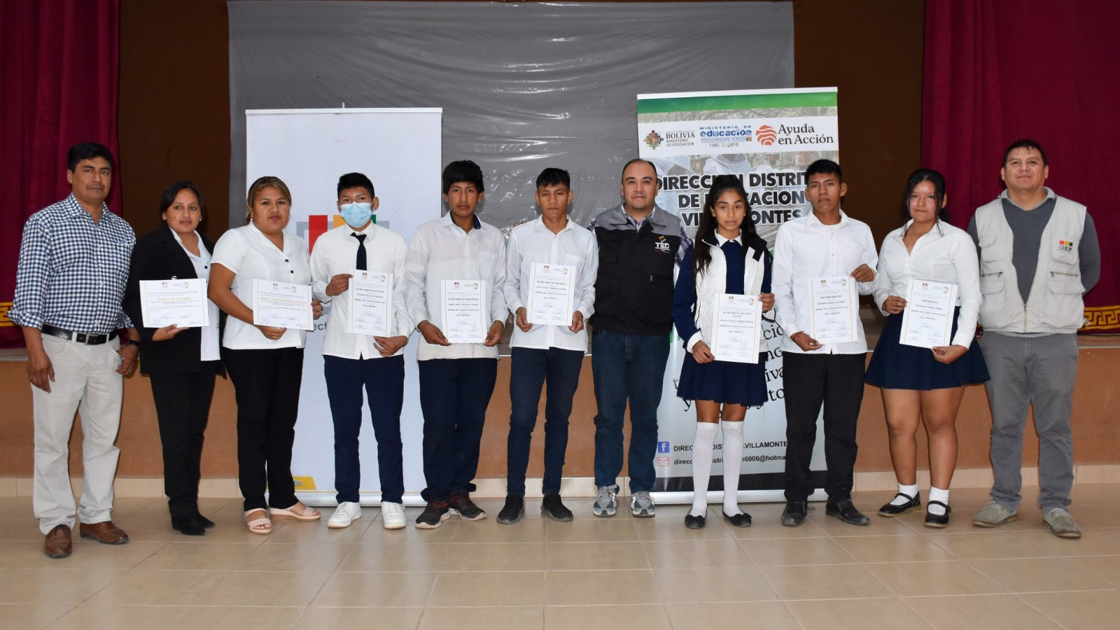 En un emotivo acto en la tierra villamontina, las y los estudiantes de las unidades educativas San Antonio, Héroes del Chaco (Puesto Uno), Santa Clara, Autino Suárez Arnez, Colorados de Bolivia, Boquerón, Cristo Rey, Tte. Victor Zeballos Claros, Defensores del Chaco, Asamblea de Dios, Ismael Montes (Nocturno), Méndez Arcos (Chimeo), Julio Crevaux (tarde), Ismael Montes (diurno), Cabo Juan Caigua, Eliodolid Tejerina Gutiérrez y Prof. Rebeca Aguirre Antelo recibieron sus acreditaciones como representantes electos mediante la democracia representativa.