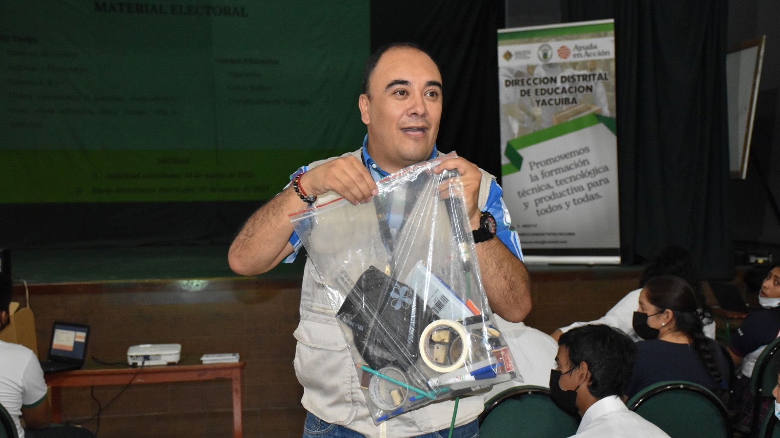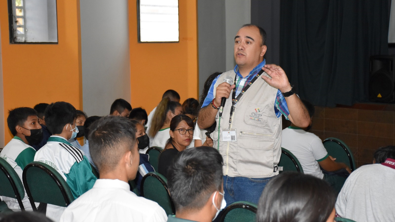 En la capacitación también participan las maestras y maestros, quienes brindarán apoyo al trabajo de los Tribunales Electorales Estudiantiles, que están conformados por seis estudiantes (tres mujeres y tres varones) en cada unidad educativa.