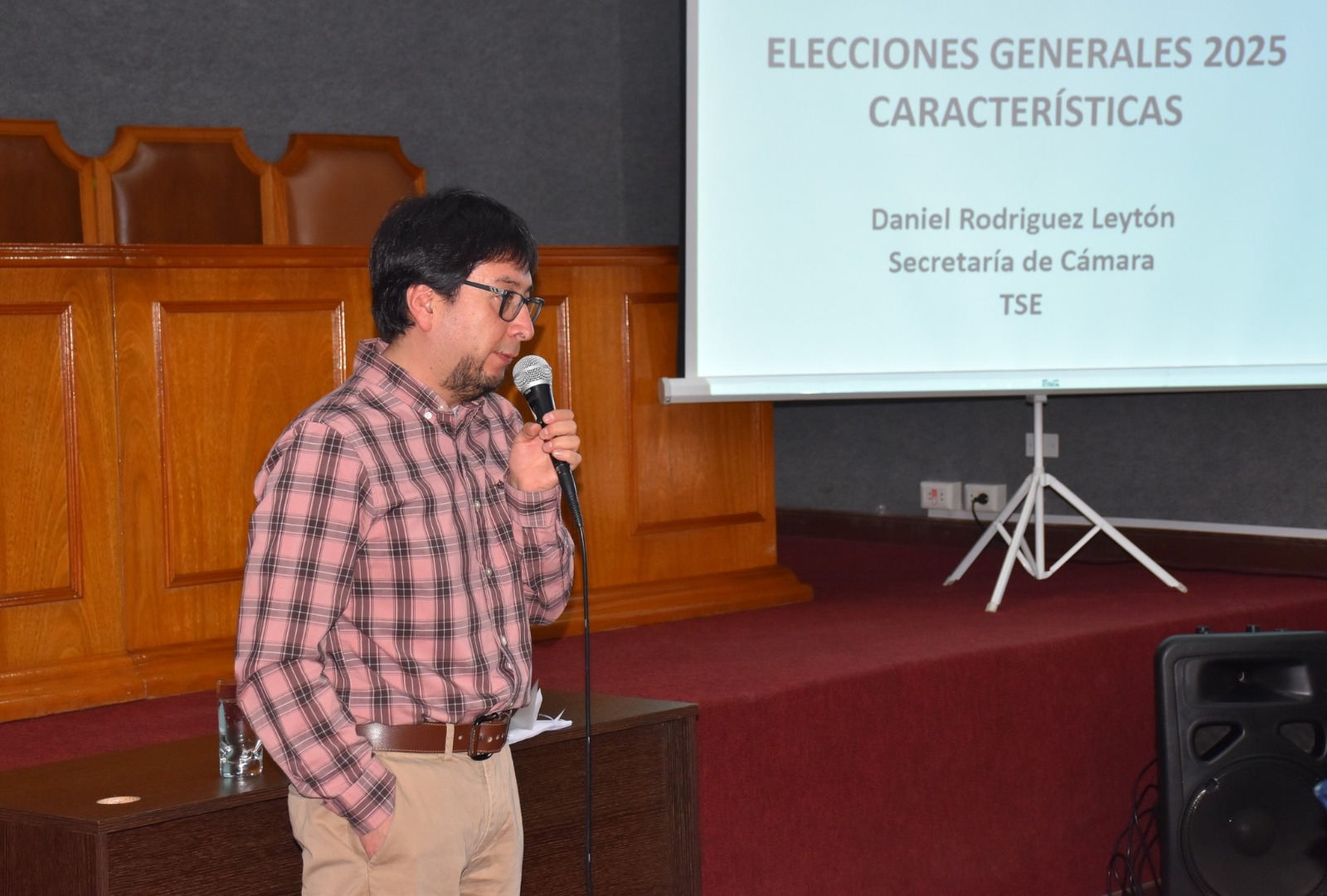 Esta capacitación fue impartida por el técnico de Secretaría de Cámara del TSE, Daniel Rodríguez, quien reforzó los conocimientos esenciales para el cumplimiento del rol jurisdiccional, obligaciones y deberes que competen a juezas y jueces electorales, de esta manera el evento se constituyó en un espacio de diálogo, reflexión y reafirmación de principios de quienes tendrán la responsabilidad de velar por la justicia en el proceso electoral.