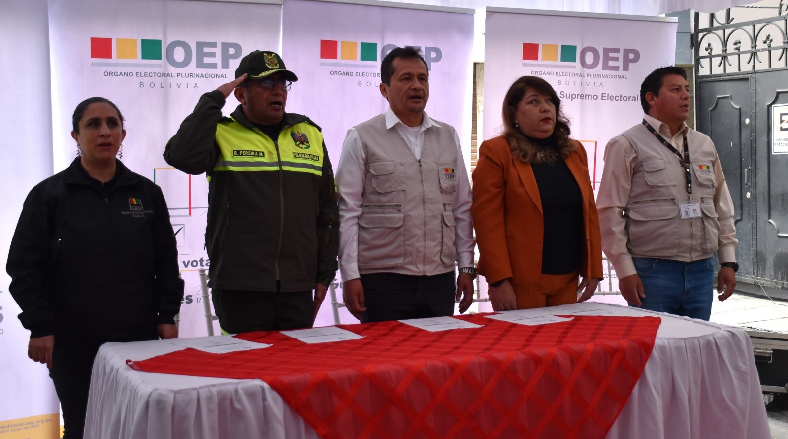 El Tribunal Electoral Departamental (TED) de Tarija dio inicio oficial a la jornada de votación de las Elecciones Generales 2025, con un acto realizado a las 08:00 de la mañana en el frontis institucional. La ceremonia contó con la participación de autoridades judiciales, policiales y militares del departamento, además de representantes de las misiones de observación internacional.