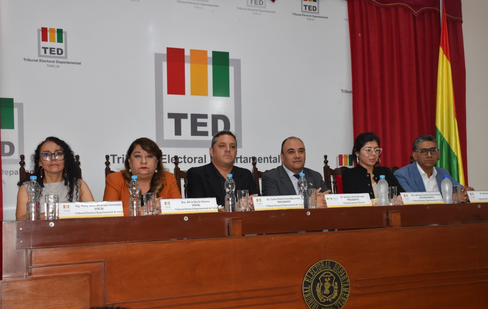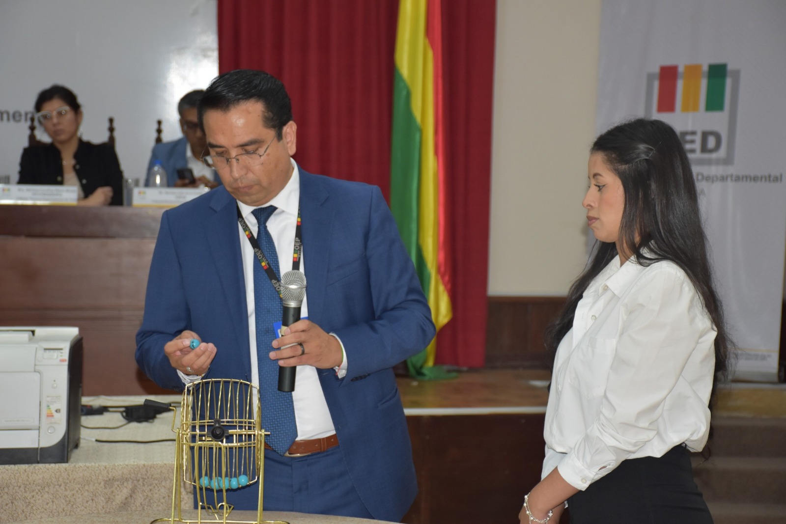 El Tribunal Electoral Departamental (TED) de Tarija llevó a cabo este viernes el sorteo público para la ubicación de las franjas de candidaturas en las papeletas de sufragio, en cumplimiento de la actividad 35 del calendario electoral del proceso de Elección de Autoridades Políticas Departamentales, Regionales y Municipales 2026.