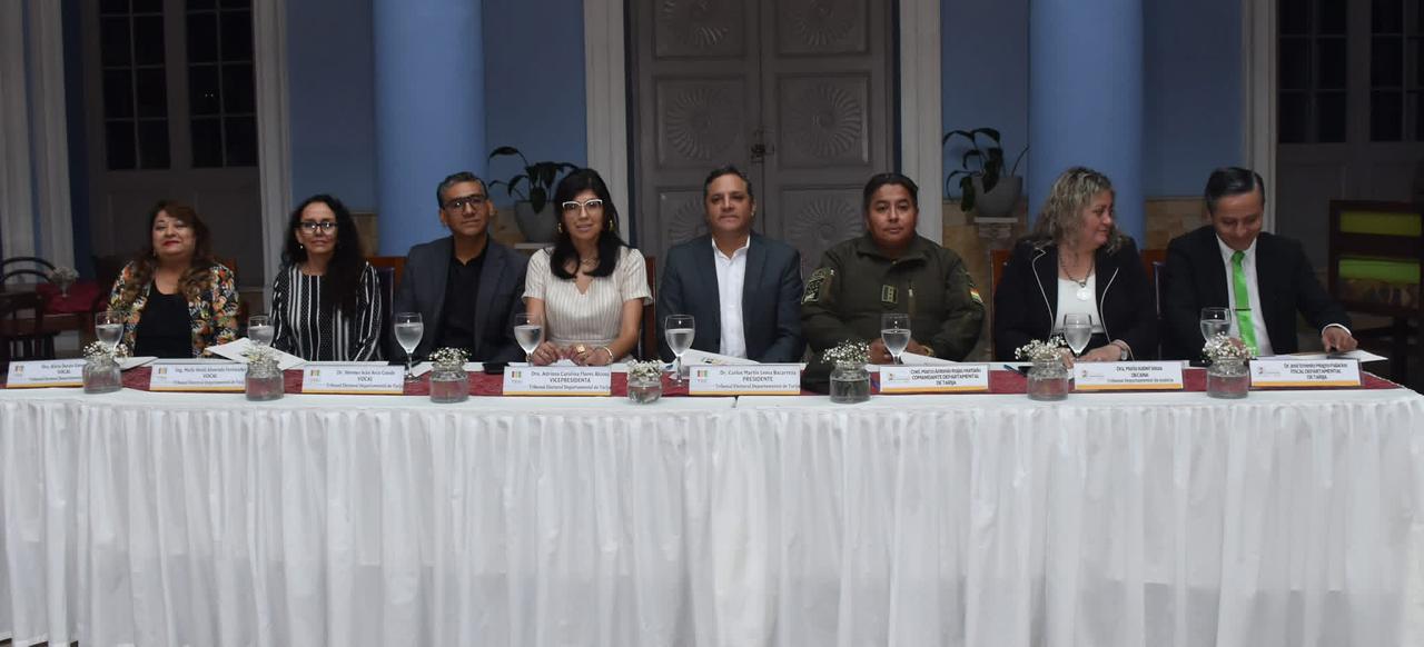 La firma del acuerdo fue realizada por el presidente del TED Tarija, Carlos Lema, en representación de la Sala Plena, junto al Comandante Departamental de la Policía, Cnl. Marco Antonio Rojas Hurtado; la Decana del Tribunal Departamental de Justicia de Tarija, María Isabel Sossa y el Fiscal Departamental de Tarija, José Ernesto Mogro Palacios.