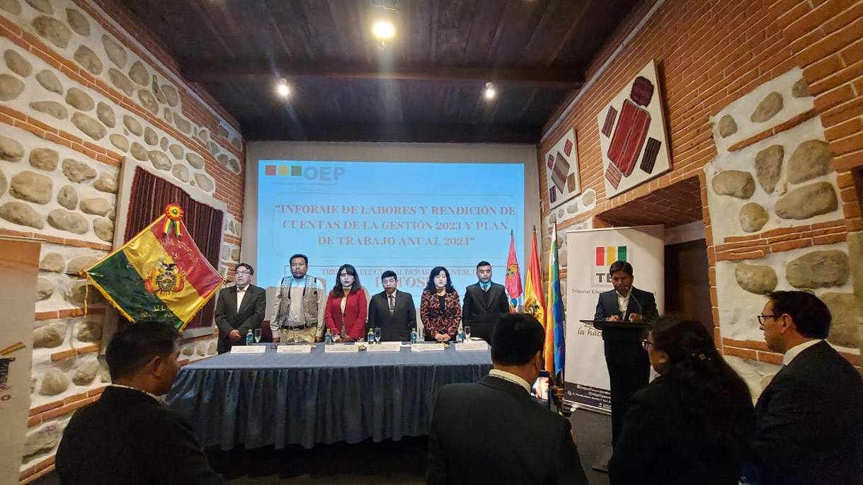 Durante la presentación del Informe de Labores y Rendición de Cuentas 2023 y Presentación del Plan Anual 2024, la Sala Plena del Tribunal Electoral Departamental (TED) de Potosí y la Dirección Departamental del Serecí, destacaron el trabajo cercano a la sociedad civil en el marco de fortalecer la democracia intercultural y la cultura registral.
