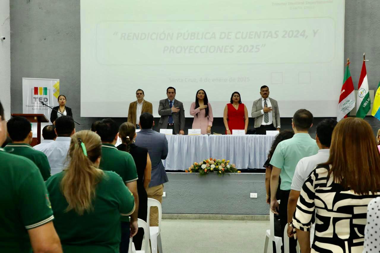 El Tribunal Electoral Departamental (TED) y el Servicio de Registro Cívico (Serecí) de Santa Cruz presentaron el informe de gestión y rendición pública de cuentas de la gestión 2024, y las proyecciones para este 2025. La presentación se desarrolló en acto público en el edificio histórico de la institución, considerado como la Casa de la Democracia.