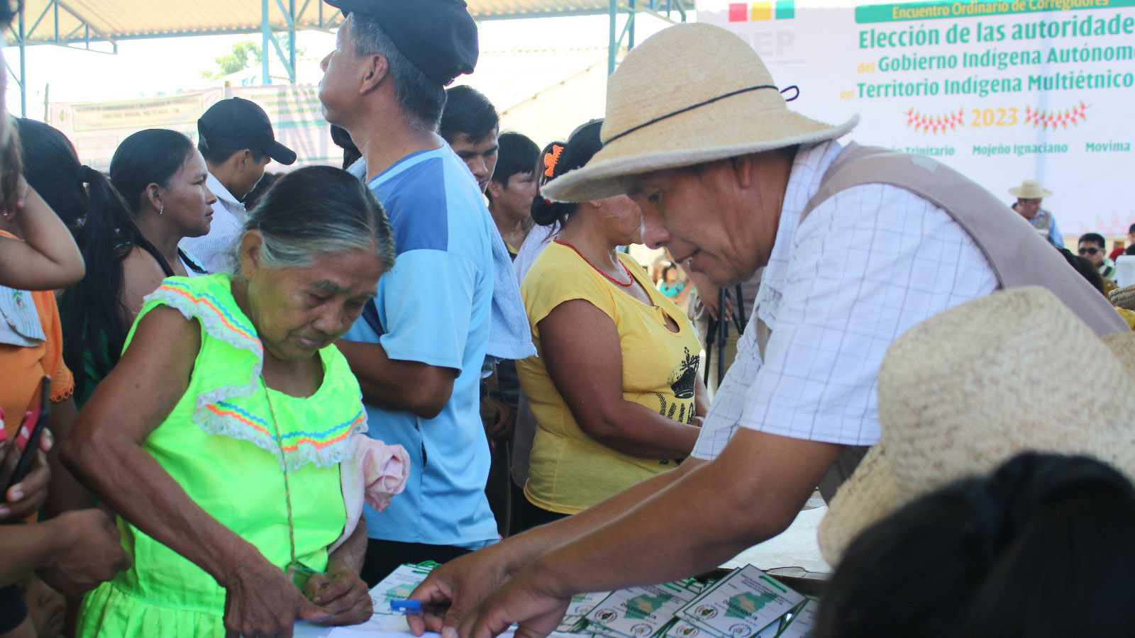 Con alegría y entusiasmo inició la acreditación de delegados para el Encuentro Ordinario de Corregidores y Delegados de las 26 comunidades para la elección de autoridades del Gobierno Indígena Autónomo Territorial Indígena Multiétnico (TIM) del Beni, fiesta democrática que se realiza en el polifuncional de la unidad educativa de San José del Cavitu.