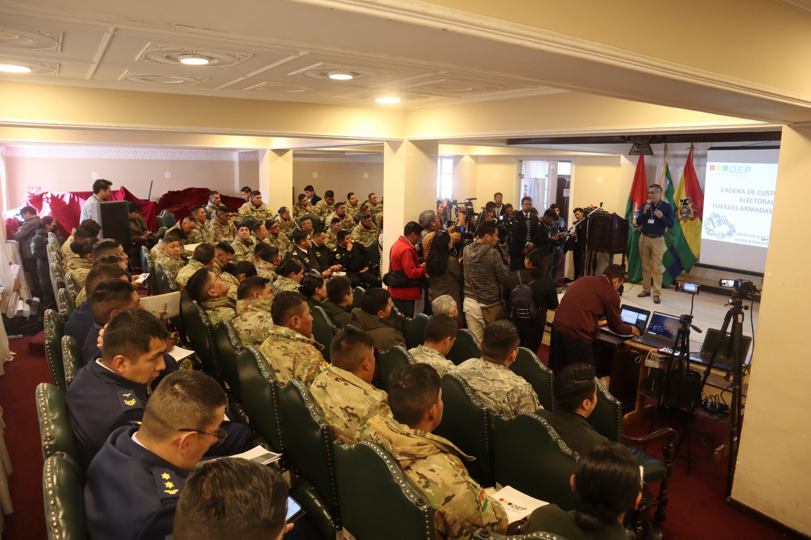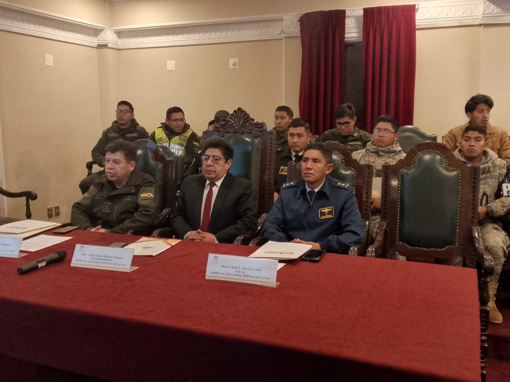El protocolo forma parte de los convenios interinstitucionales suscritos entre el TSE, la Policía Boliviana y las Fuerzas Armadas, en el marco del fortalecimiento de la democracia y la confianza ciudadana, por lo que asistieron autoridades militares y policiales, como el Tte. Cnel. Samuel Calderón Ventura, jefe departamental de la Fuerza Aérea Boliviana; el Cnel. Marco Peñarrieta, del Comando Departamental de la Policía de La Paz, así como oficiales del Batallón de Comunicaciones de la División Mecanizada 1 de Viacha, el Regimiento de Infantería Mecanizada Ayacucho Tarapacá Max Toledo y el Regimiento de Caballería Blindada de Calama.