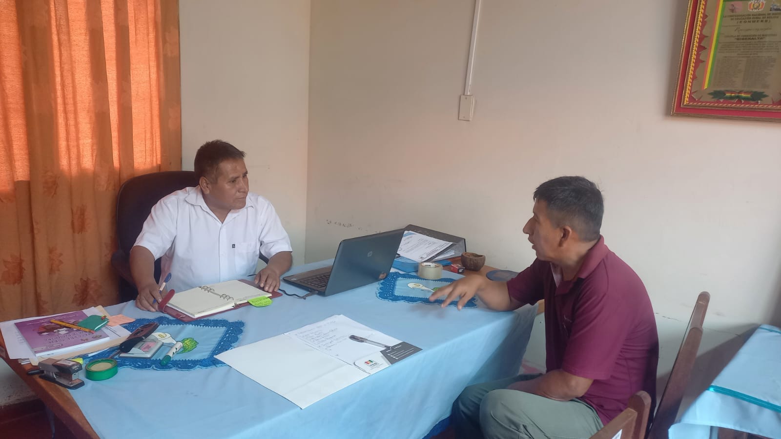 Asimismo, representantes del TED Beni se reunieron este 24 de abril con el Director de la Escuela Superior de Formación de Maestros en Riberalta. En este encuentro se coordinó el Curso de Promoción de la Democracia Intercultural, programado para iniciar en agosto de 2024 y dirigido a estudiantes de quinto año en la asignatura de Educación Popular; la actividad durará un mes y se combinará las modalidades virtual y presencial, para finalizar con una feria organizada por los participantes.