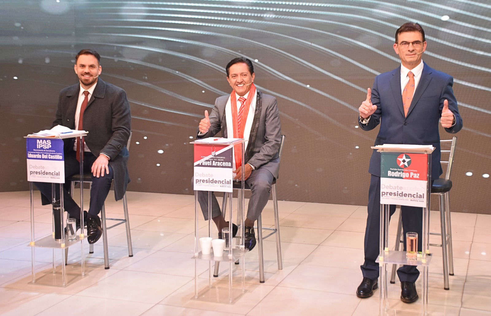 En el evento participaron el candidato presidencial del Movimiento Al Socialismo-Instrumento Político por la Soberanía de los Pueblos (MAS-IPSP), Eduardo del Castillo; Pavel Aracena candidato de Alianza Libertad y Progreso (ADN); y Rodrigo Paz, presidenciable del Partido Demócrata Cristiano (PDC).