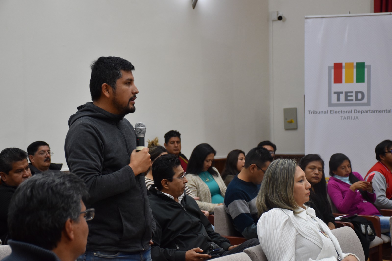 En la oportunidad, el presidente en ejercicio del Tribunal Electoral Departamental (TED) de Tarija, Oscar Gutiérrez, destacó la presencia de las autoridades del TSE y directores nacionales del área Jurídica y del Servicio de Registro Cívico, quienes aclararon las dudas y consultas de las y los periodistas participantes.