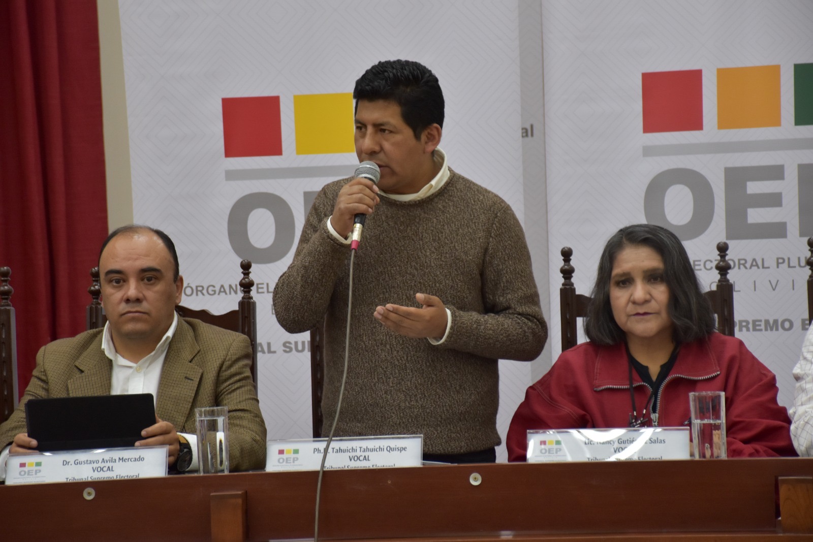 El vocal del TSE, Tahuichi Tahuichi, enfatizó en la importancia de la publicidad de los actos de la institución para crear confianza en la ciudadanía: “Vamos a construir democracia, vamos a construir confianza e imagen con una palabra, transparencia. Este Órgano Electoral tiene como política transparentar todos sus actos”, manifestó la autoridad.