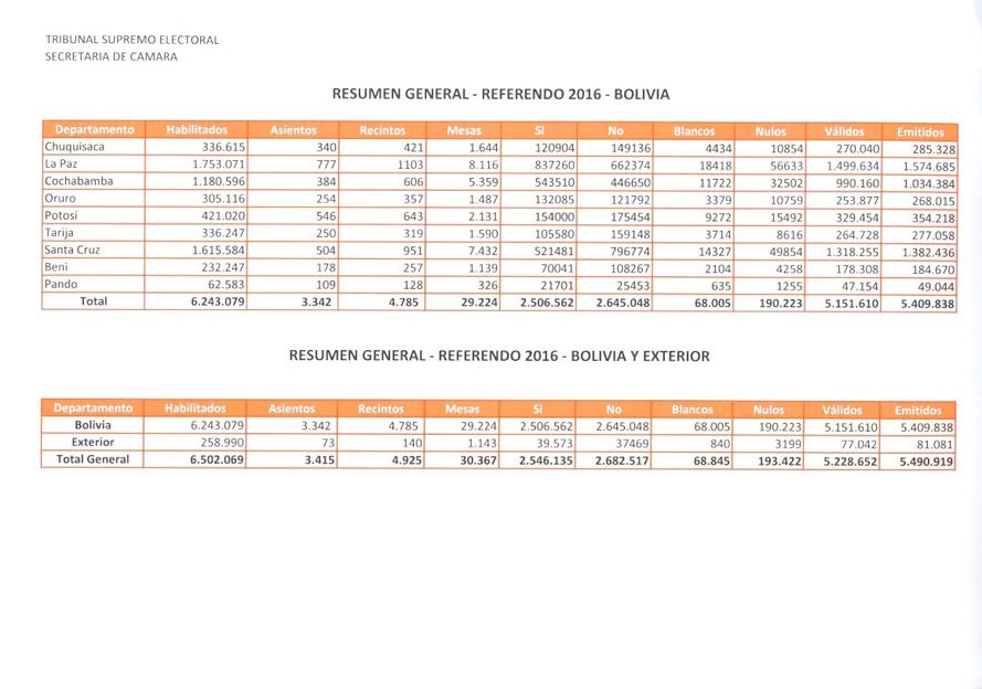 Cumpliendo está formalidad se envió a través de una nota el acta de cómputo nacional que contiene todos los resultados a nivel consolidado de Bolivia y el exterior, pero también los datos desagregados por departamento con los respectivos porcentajes y todo el detalle correspondiente.